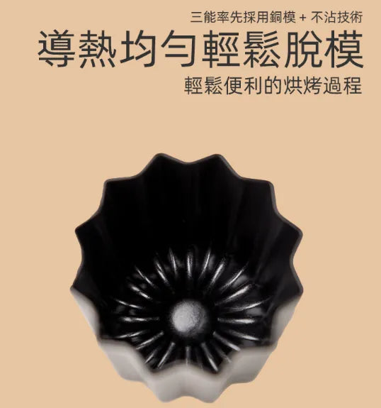 三能獨家製作,可麗露系列最強新品,經過多次打樣測試終於製作完成,成品超美,那立體的線條感,讓可麗露的造型更加別緻,模具一體成型的設計方式,不但結合了鍍鋁的不沾塗層,導熱均勻,脫模不費力,就連清洗也都不費力,這款商品絕對適合,不愛用蜂蠟又怕沾黏不好洗,卻又希望做出美美成品的你,還有懶得樣模的我們都十分適合唷。