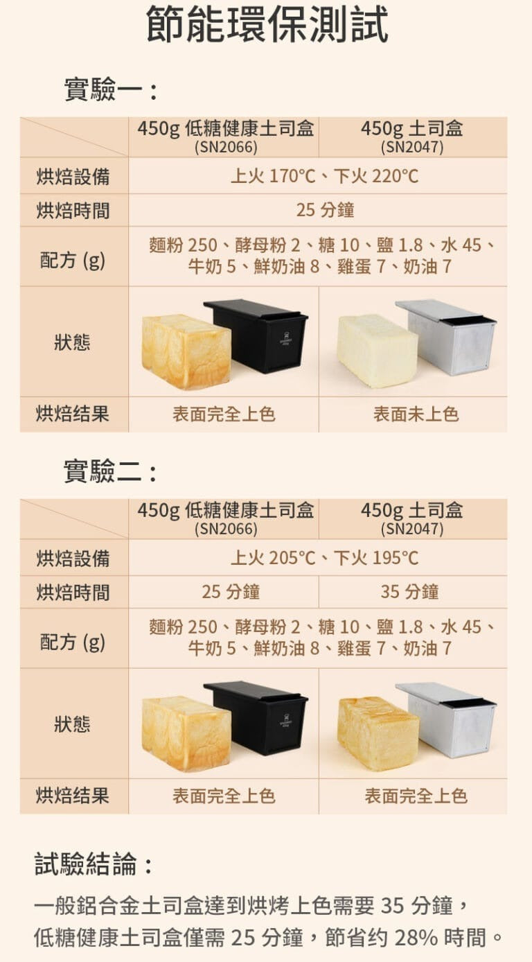 深色不沾塗層更聚熱,有效縮短烘烤時間,降低成本