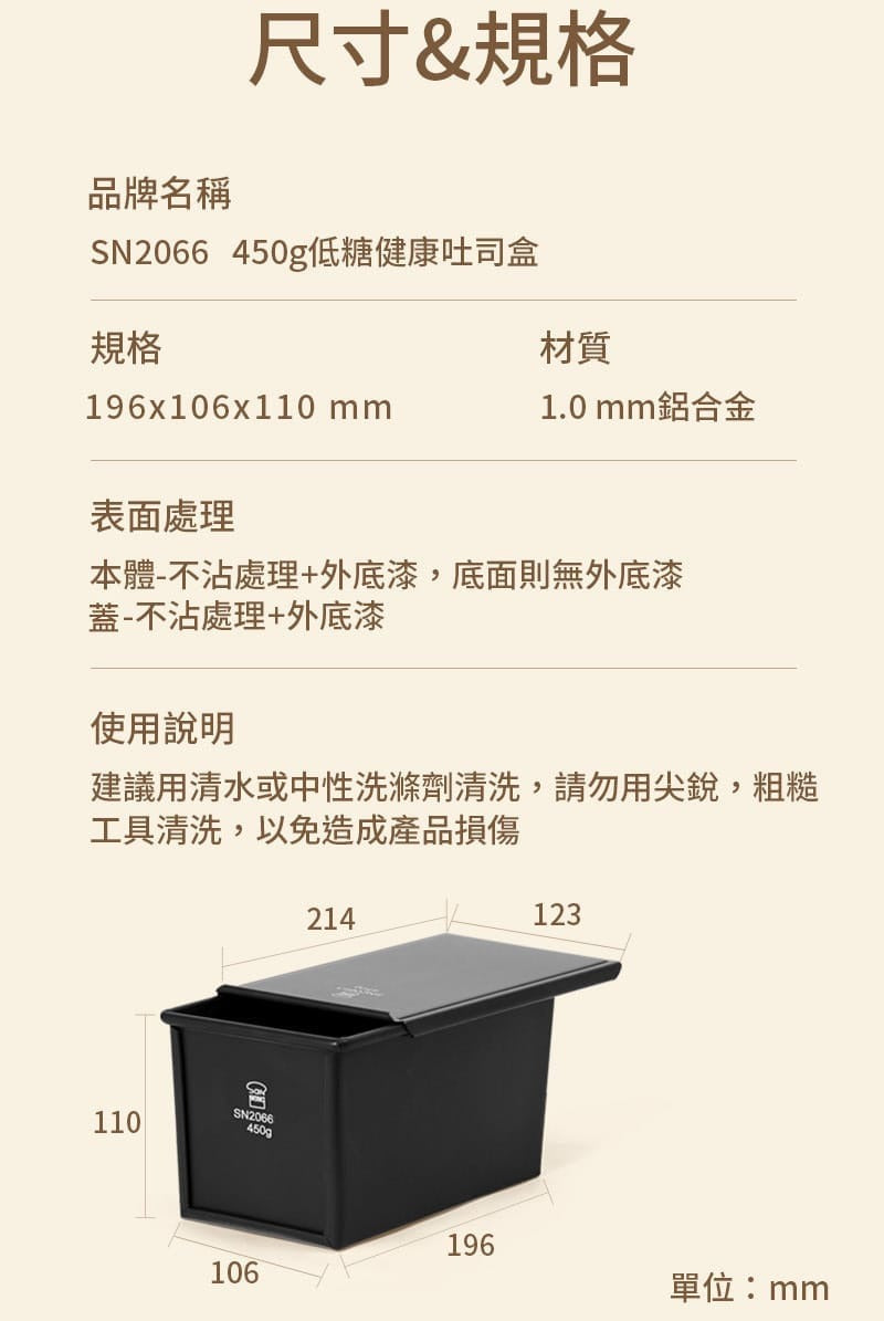 三能|450g低糖健康土司盒(1000系列不沾) SN2066-附蓋