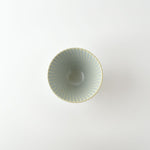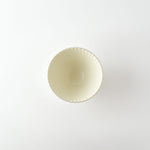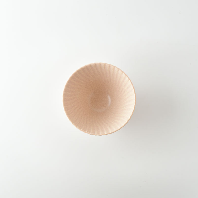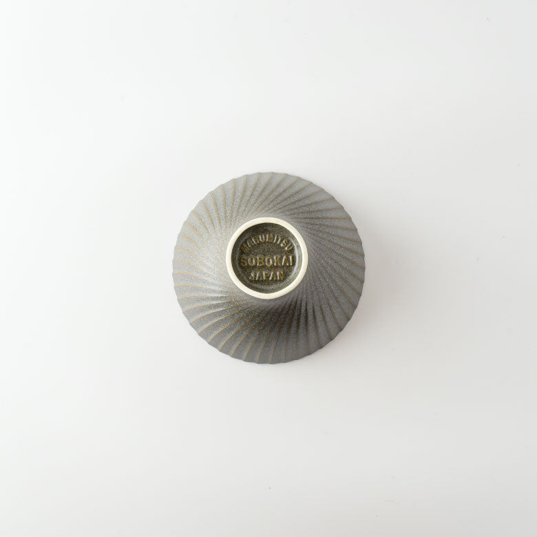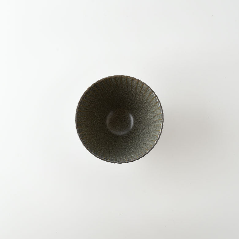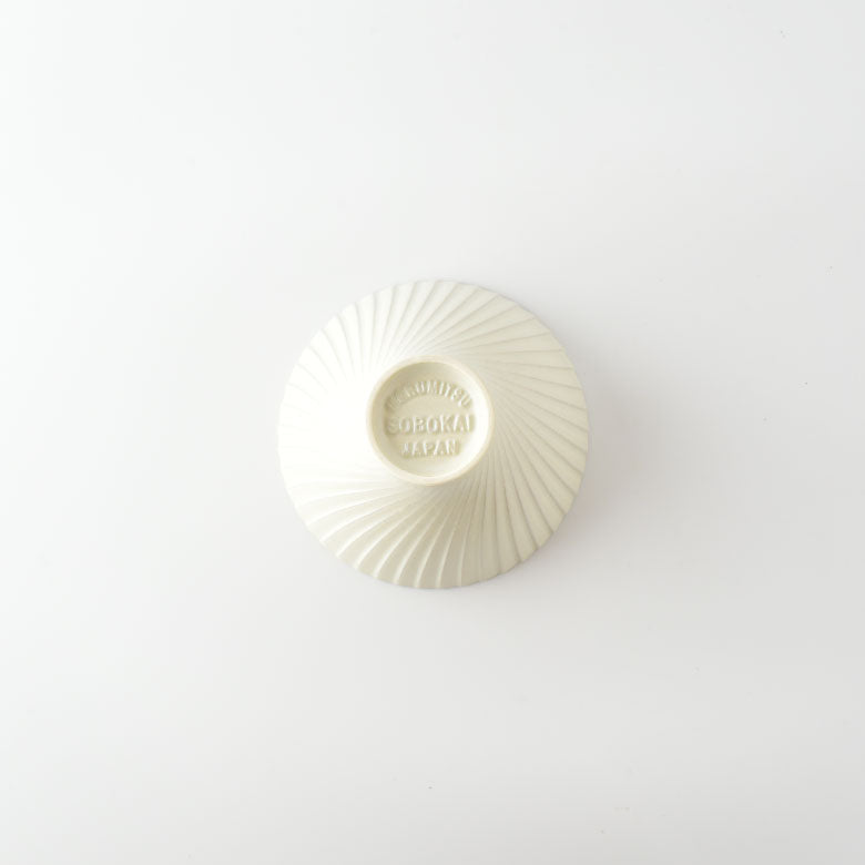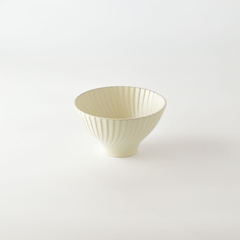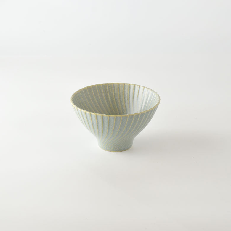 以帶給人吉祥的飯碗為概念所企劃的產品。mille在義大利文中表示千、或是數量很多的意思。這是一款讓餐桌一瞬間變得華麗的飯碗,以像折扇般的許多摺痕無限延續的形象去設計,重疊邊緣的裝飾和曲線讓人不會看膩。所有顏色都使用了柔和地像是降下冰霜般,帶有斑點的釉料去上色,營造出了深邃的外觀。