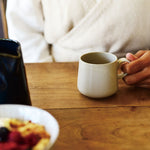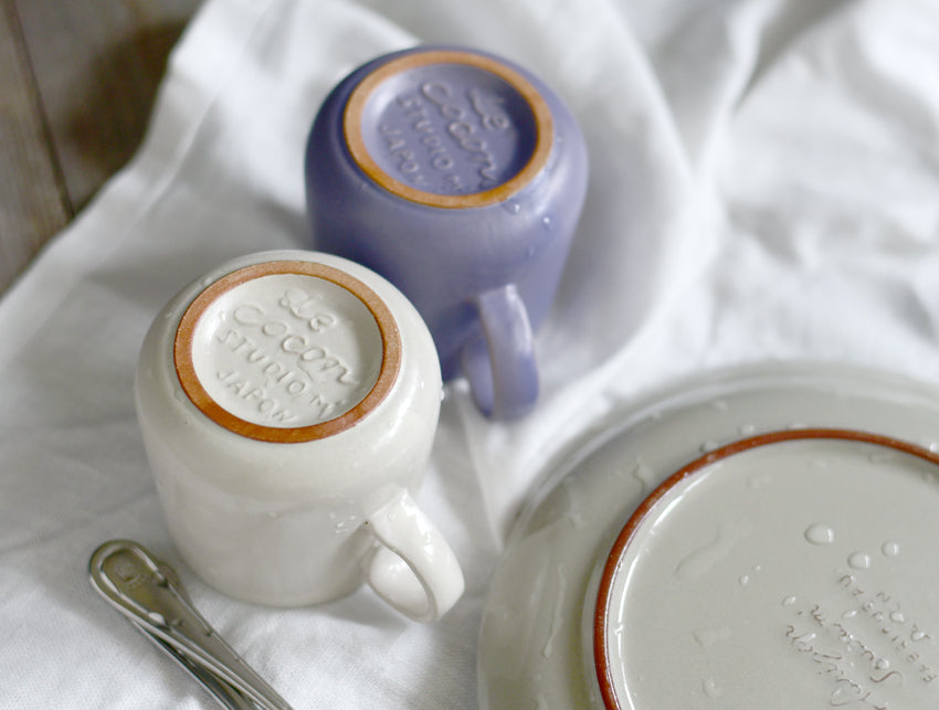 以曲線作為設計特徵的馬克杯看起來像一個繭,因此命名為cocon系列。適合飲用帶有蒸氣泡沫牛奶的拿鐵或香料熱可可。是在寒冷的日子裡能藉由馬克杯傳遞溫暖和幸福感的小巧尺寸。把手是用一種叫做可塑成型的技術手工製作,陶器的質地和手工都非常優秀。可以從通透紅土中看到質地的紫色最具魅力。