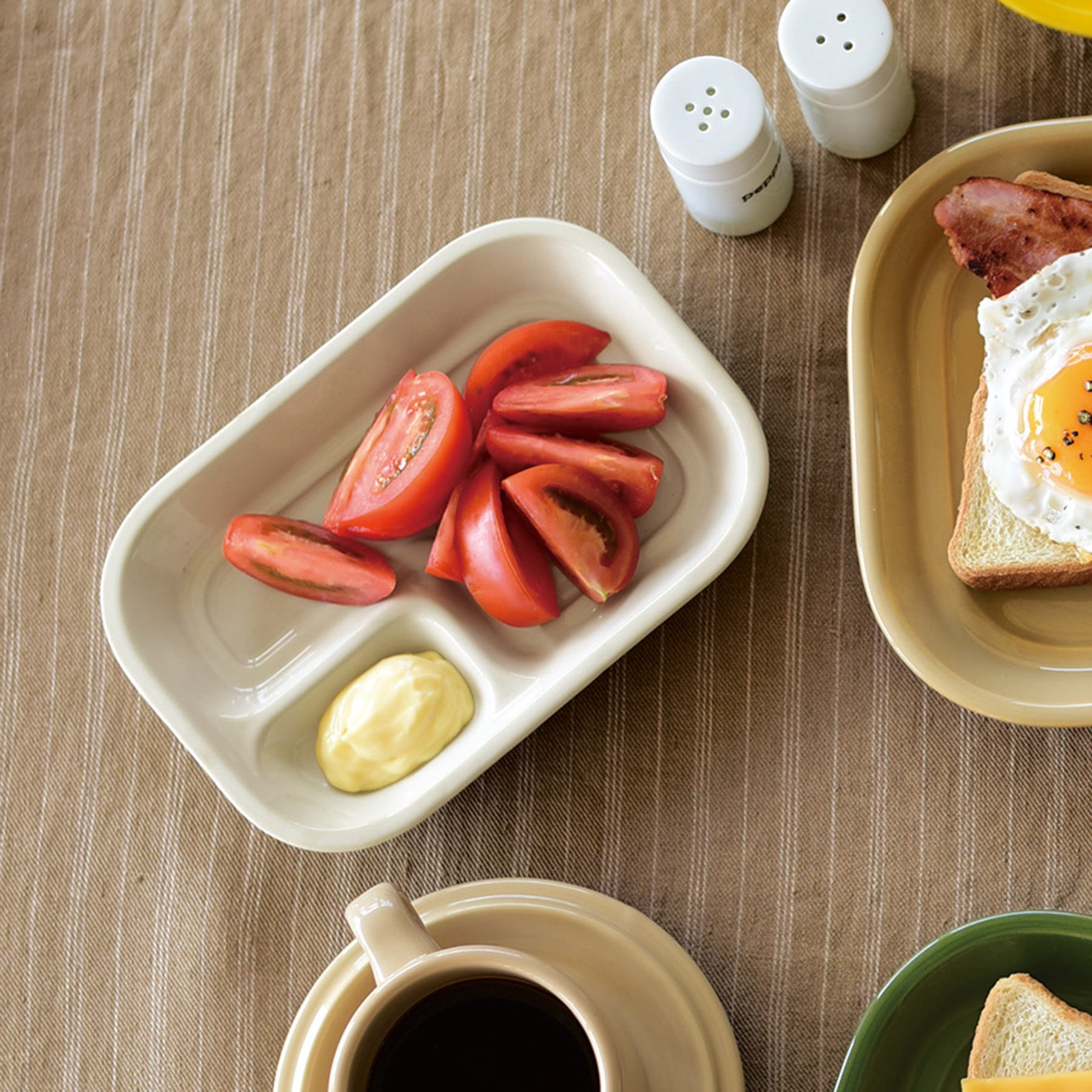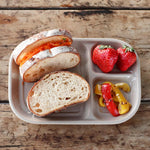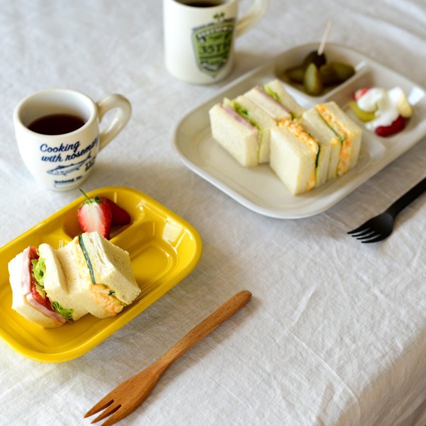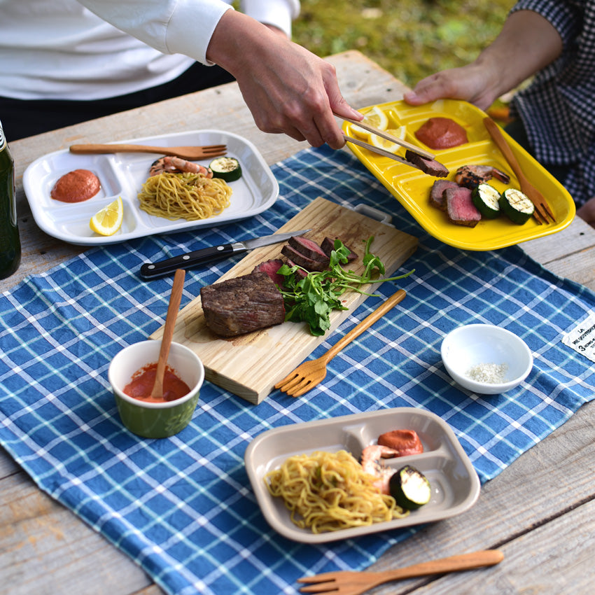 午餐盤有三個分隔,讓您承裝沙拉、水果,搭配咖哩、涼拌捲心菜、泡菜等。應該在這個空間裡放什呢?完成三道菜的擺盤時將很有成就感。