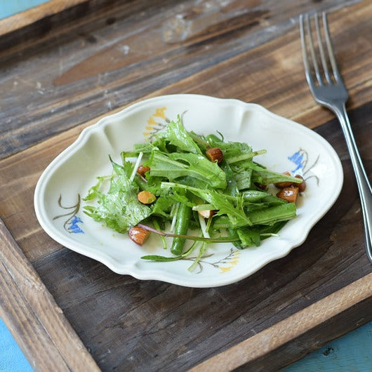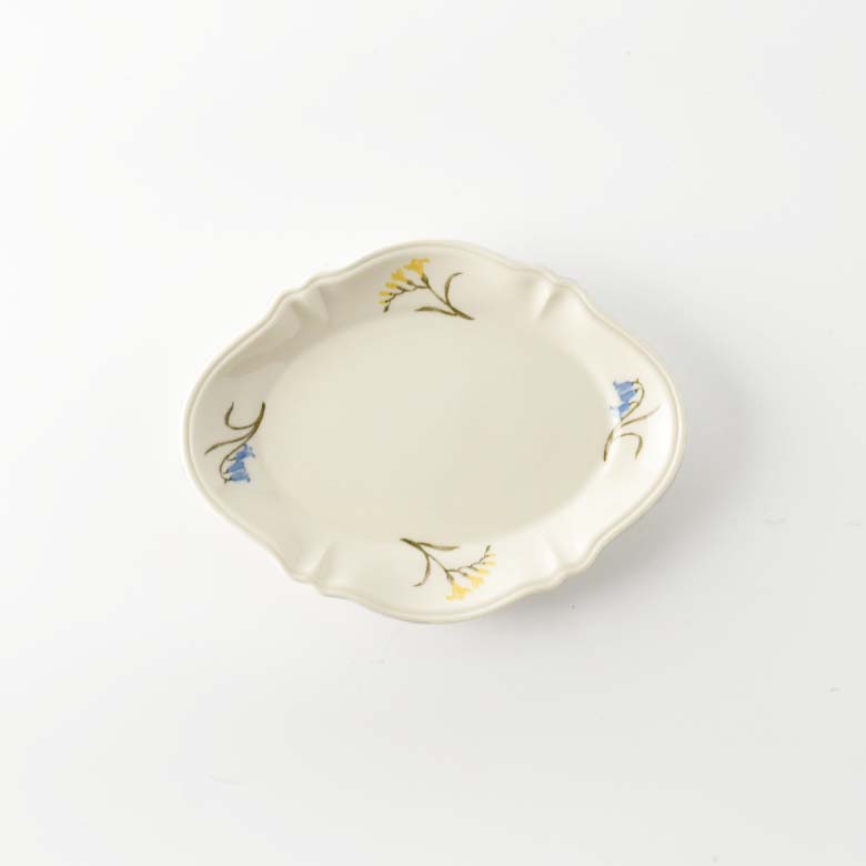 mignardises是法文的飯後點心的意思。顧名思義是以用來放置甜點為概念所設計的器皿。比利時以其季節性花卉和花卉祭典而聞名,而這款器皿在造型優雅富於裝飾性的銅版上飾有高雅的花卉圖案。可以用來排放幾個巧克力和點心,或是放上鬆餅或蛋糕。用這款mignardises橢圓盤能讓點心時間更加愉快。