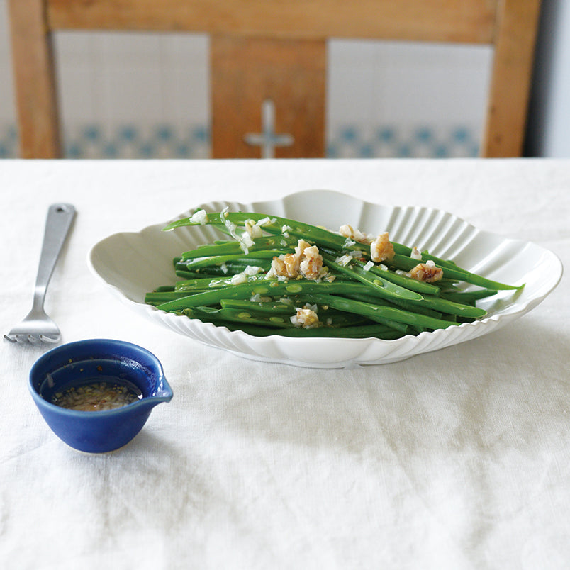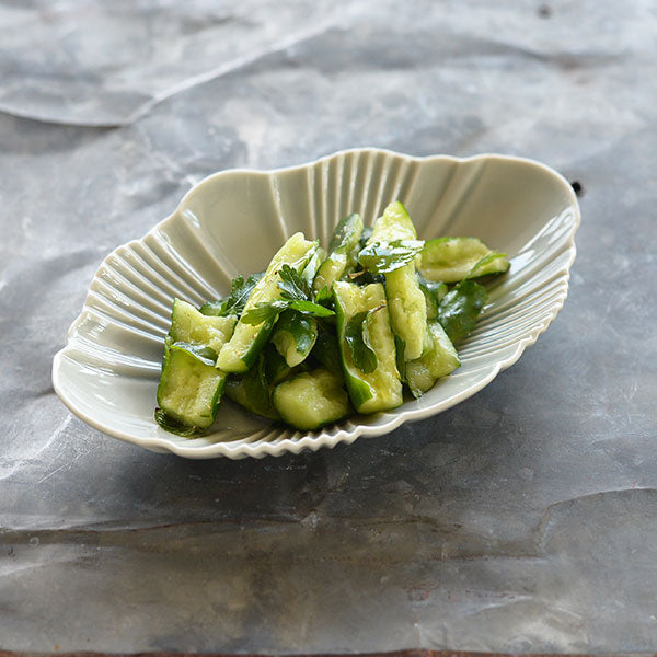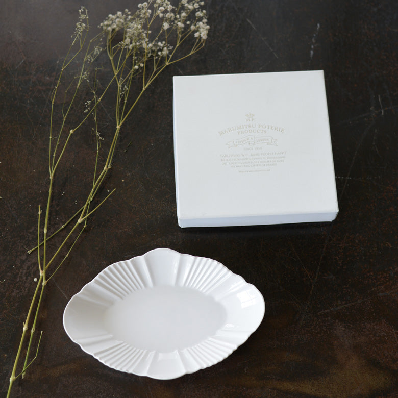 pluie在法文中是「雨」的意思。 以會讓眼睛和內心都印象深刻的器皿為想法所製作的。細小不均勻皺褶在橢圓形器皿上呈現,是一款有著像跳躍的雨滴一樣輕盈感的餐具。可以用來盛放蔬菜、麵包、蛋糕、和烤餅乾一起擺放大量奶油和水果等,能被廣泛運用在每天的餐桌上。