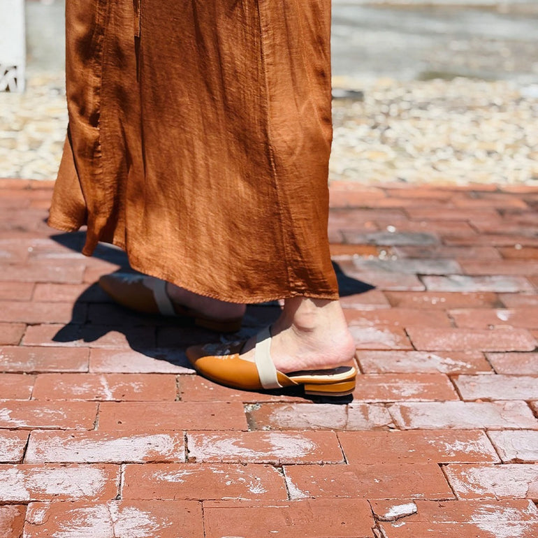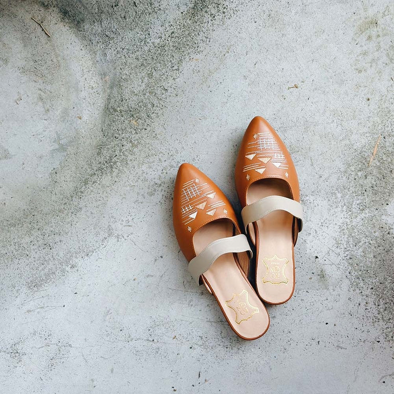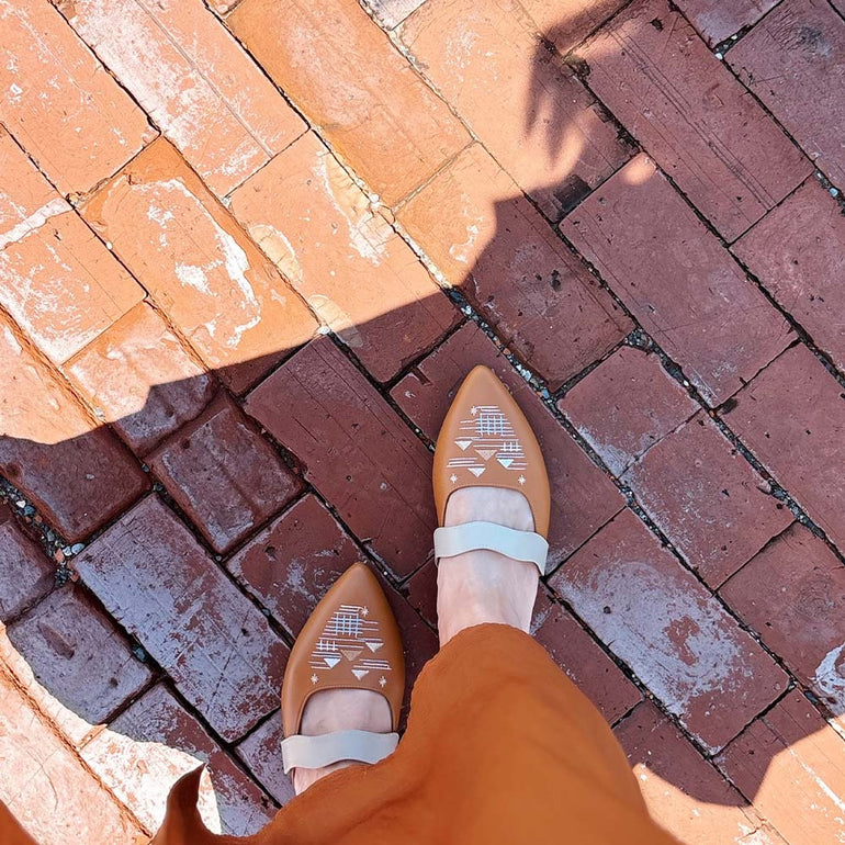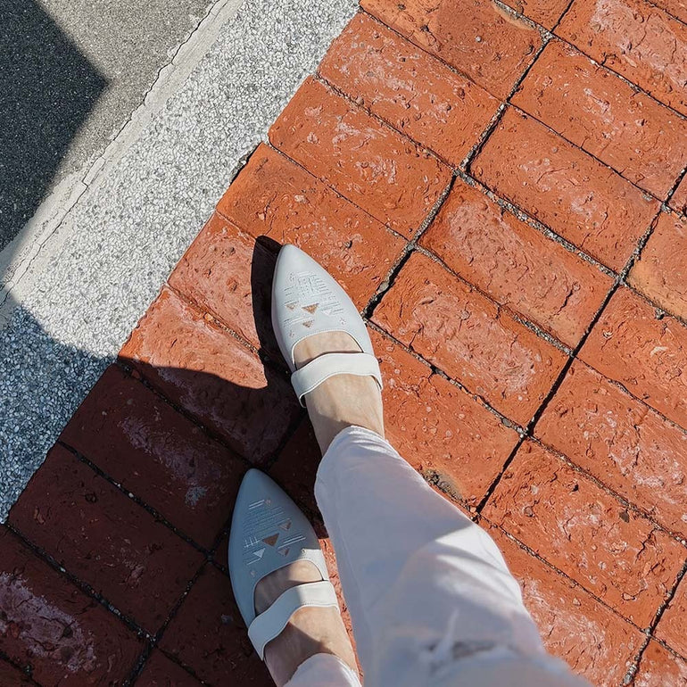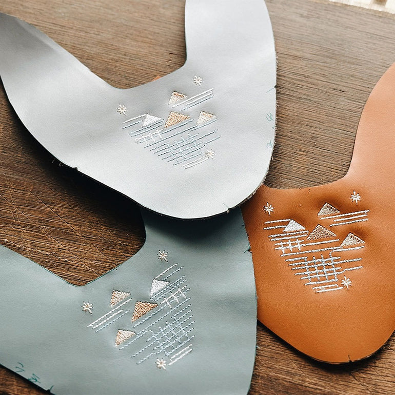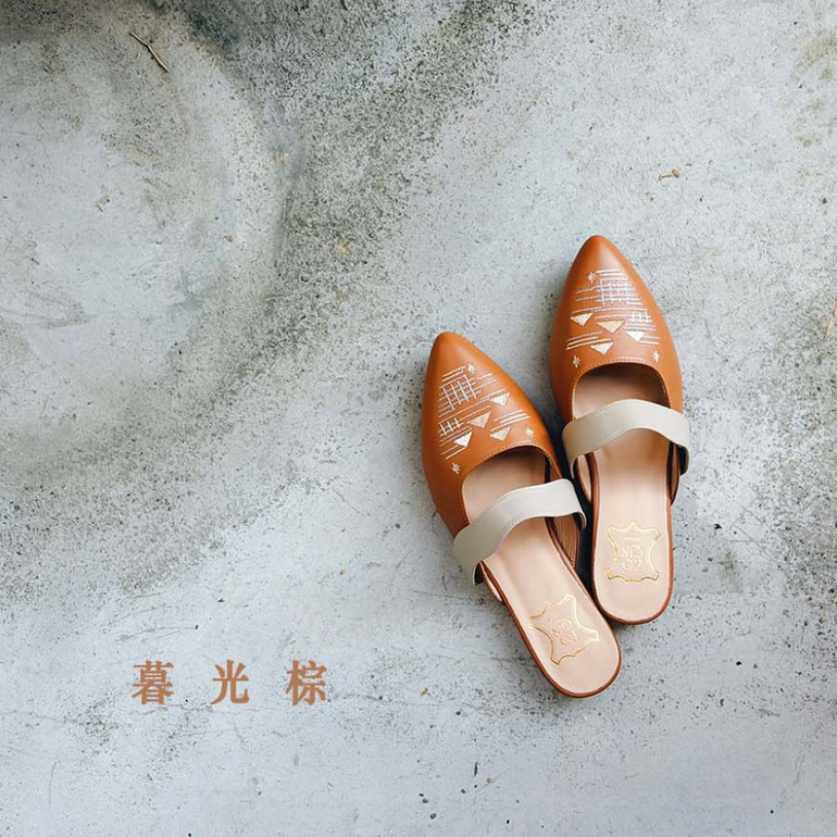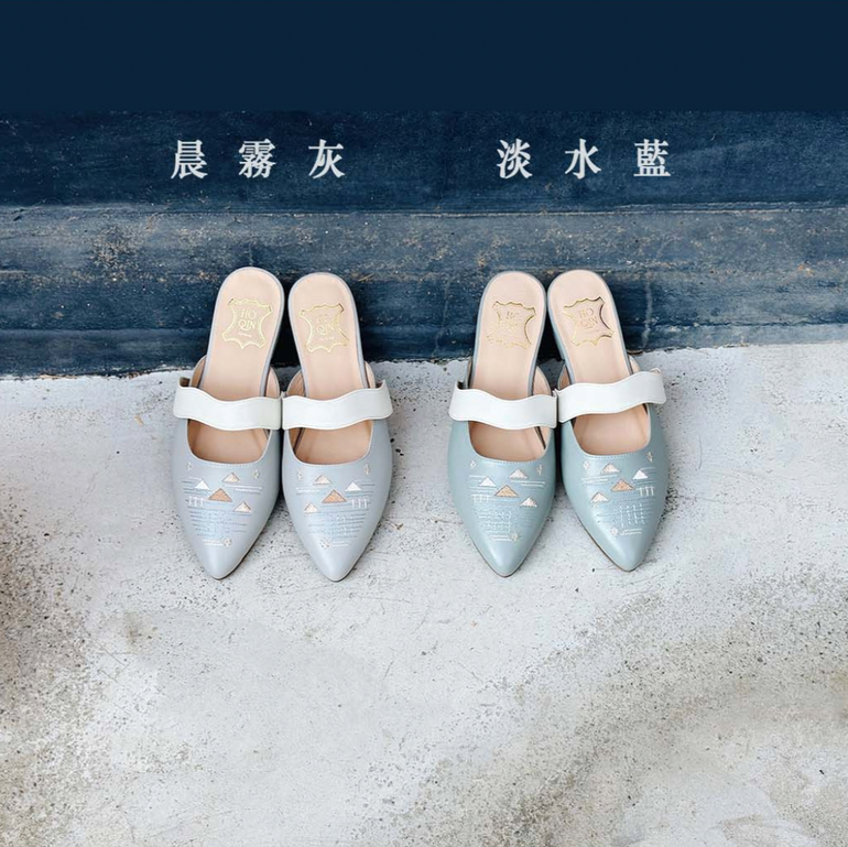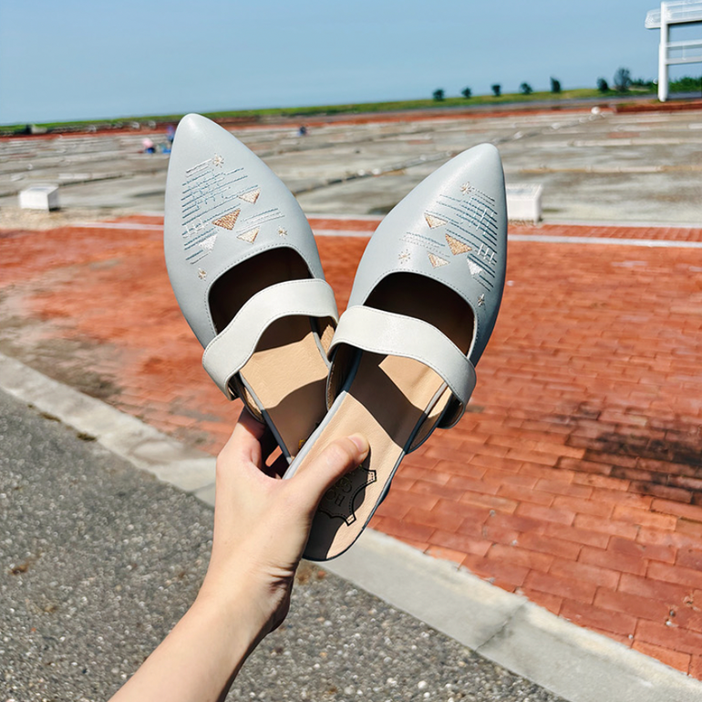鞋面上以細緻的幾何刺繡,刻畫出鹽田的層層意象。