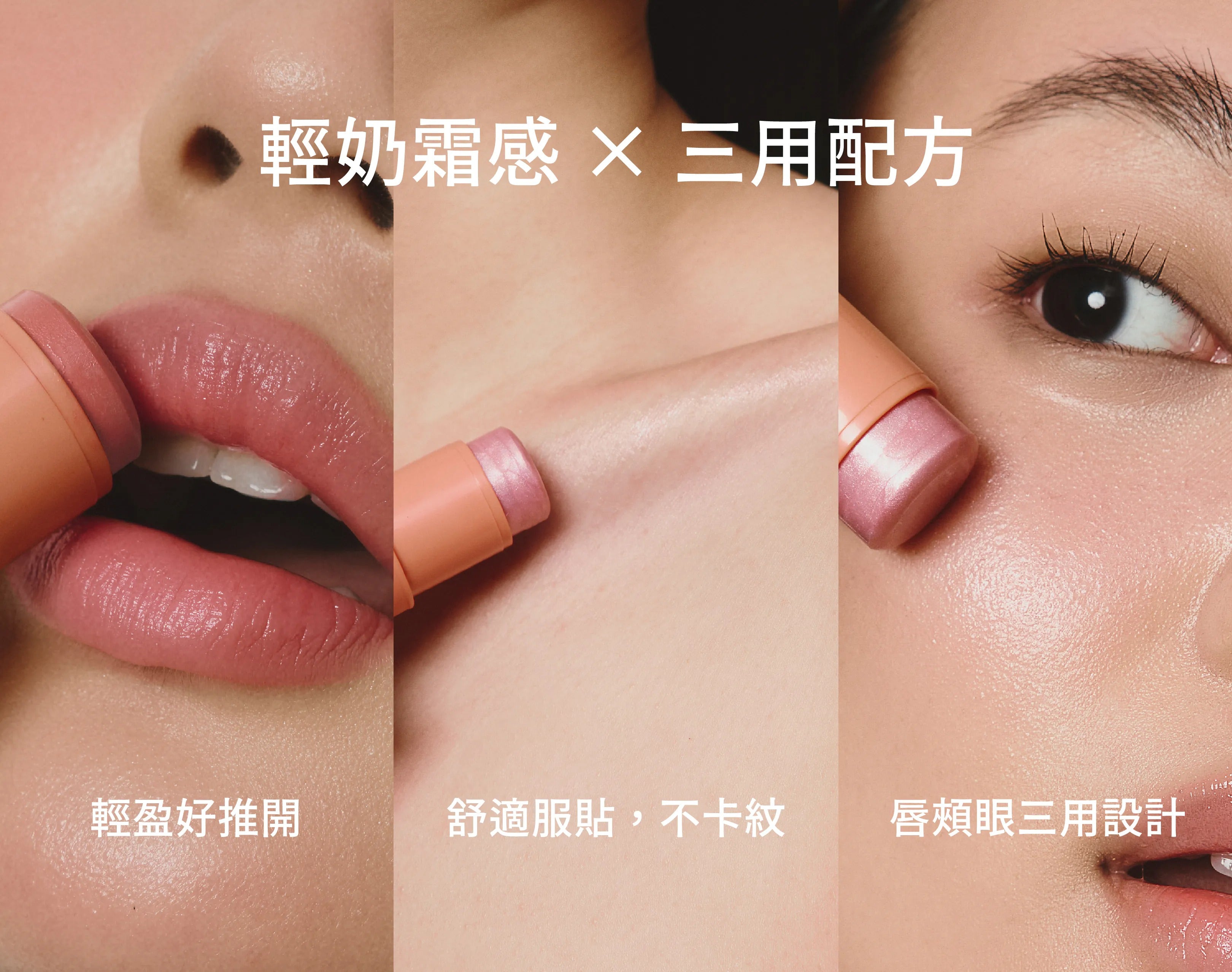 輕奶霜感 × 三用妝感配方:細緻滑順的質地,輕盈服貼,無黏感、不厚重、不卡紋。