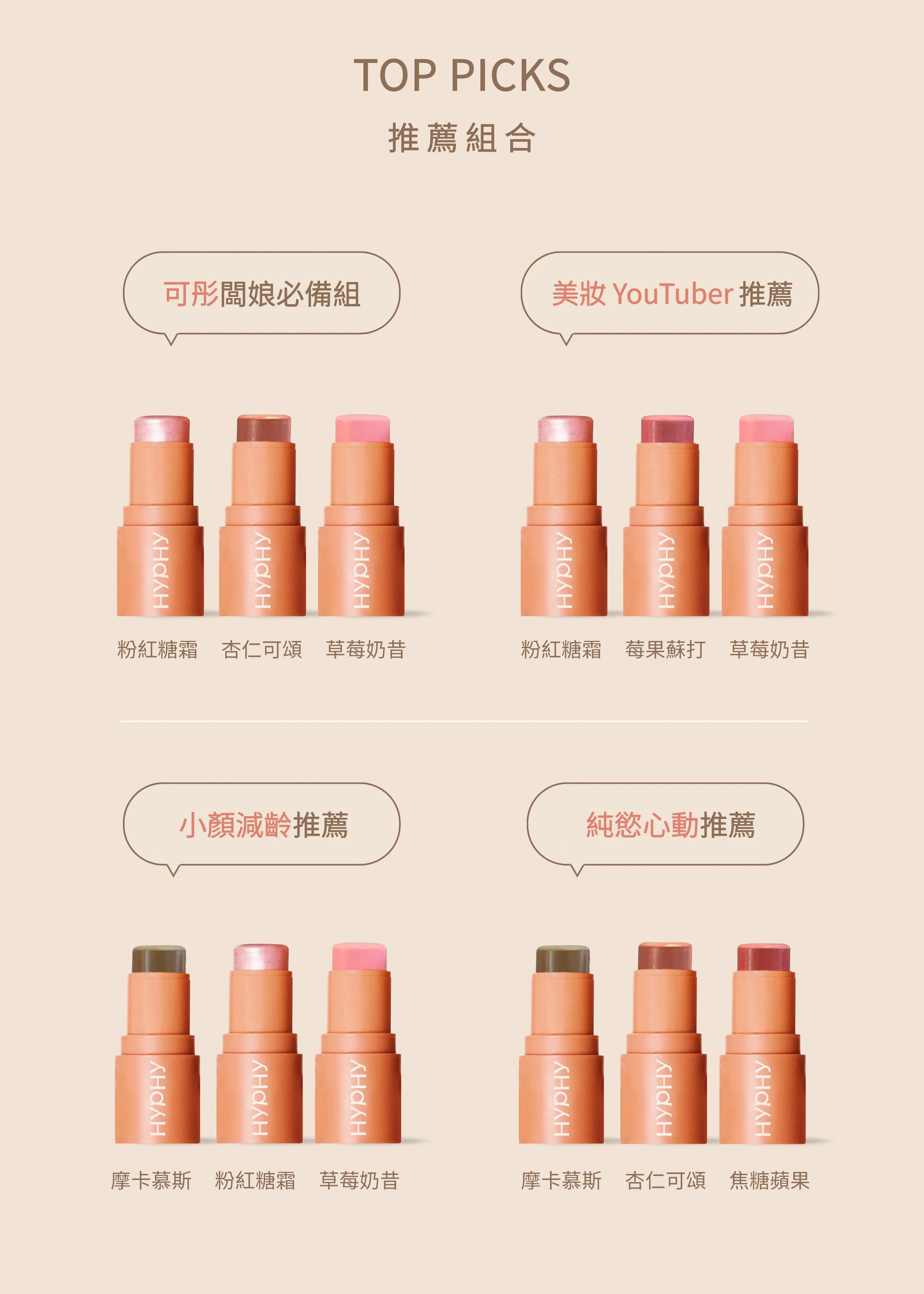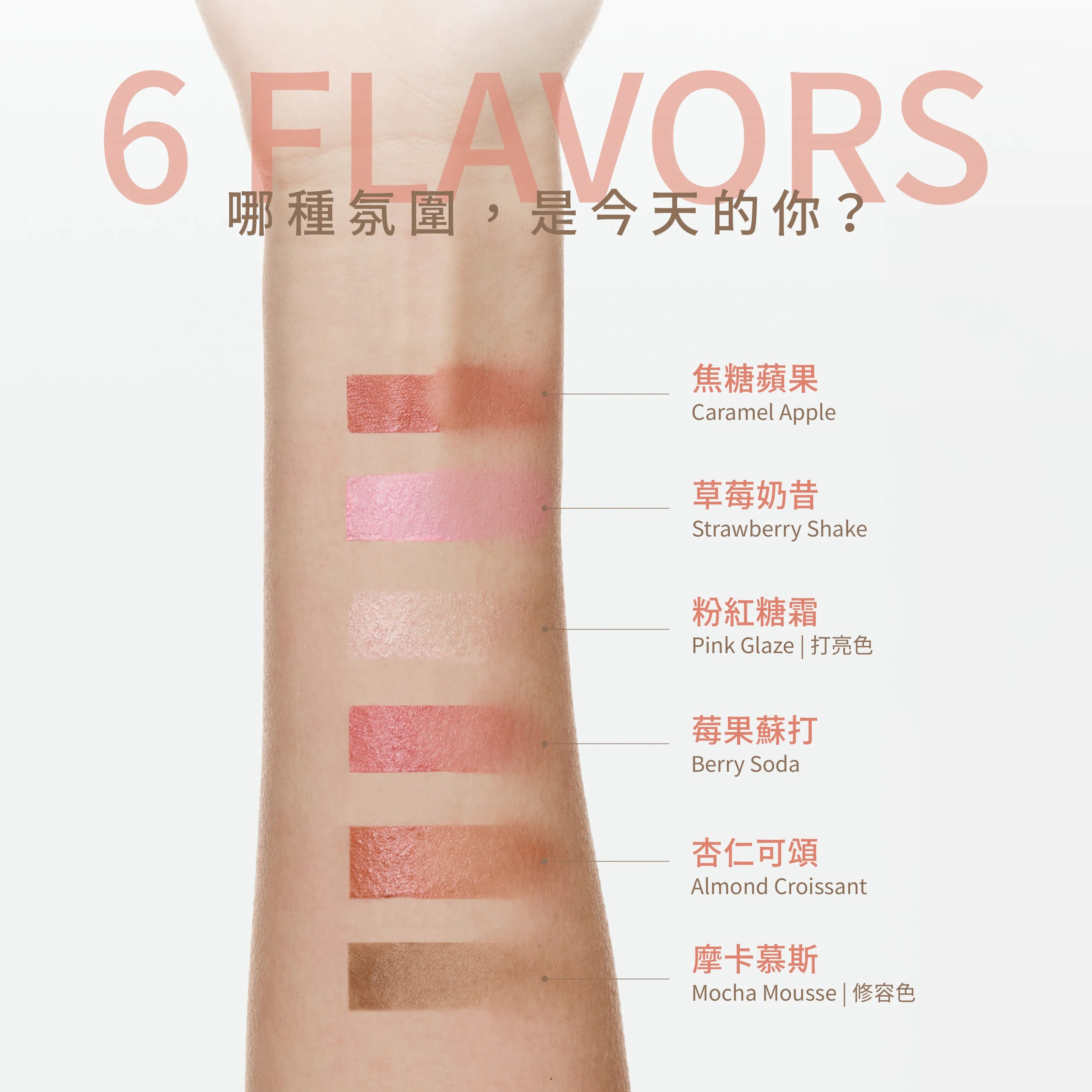 將滑順奶霜質地濃縮進每一抹色彩中,可上唇、頰彩、眼妝,妝效乾淨、質地貼膚、光澤自然,讓你每天妝容都像自選甜點盤,輕鬆依情緒調味。