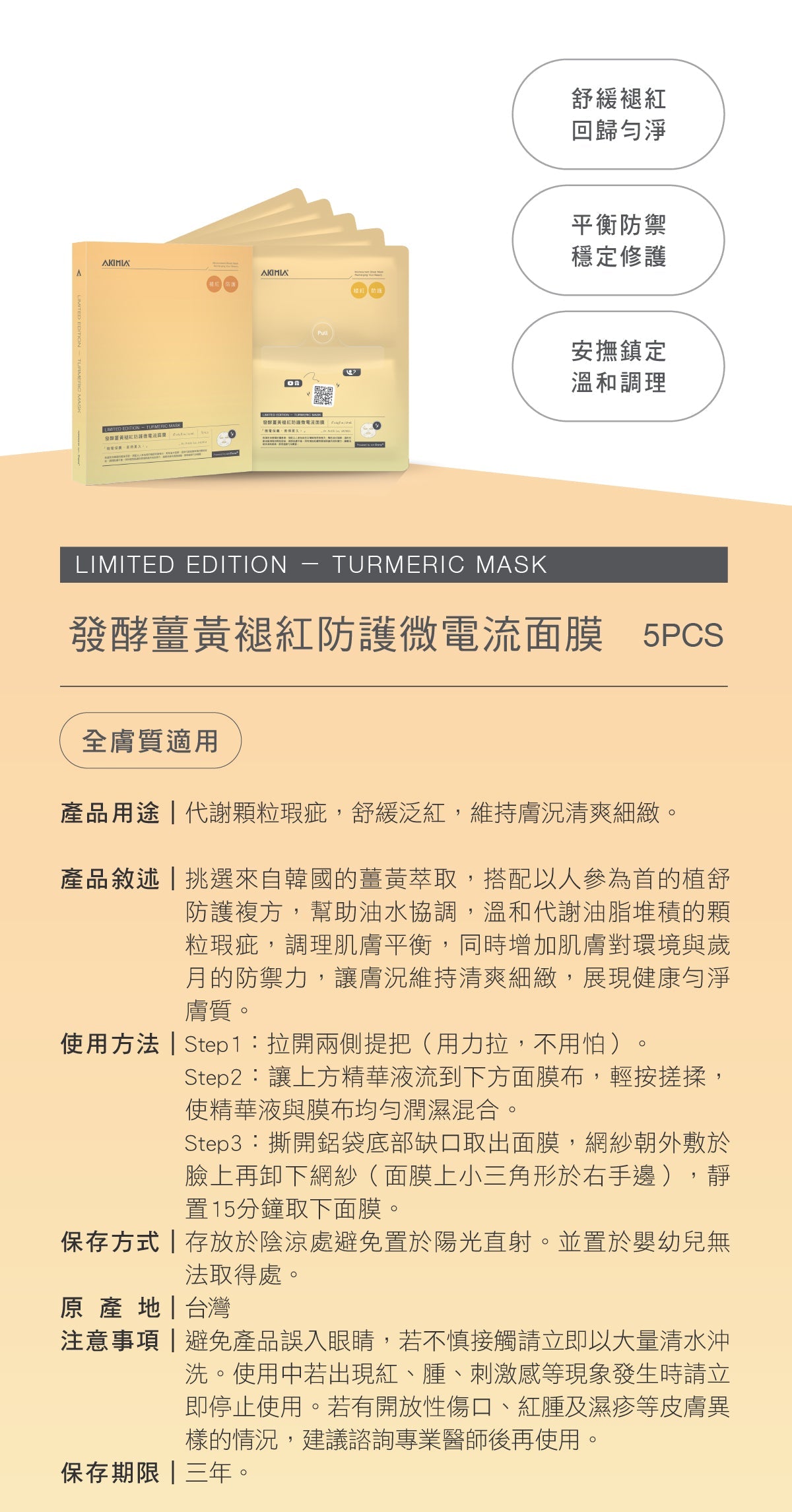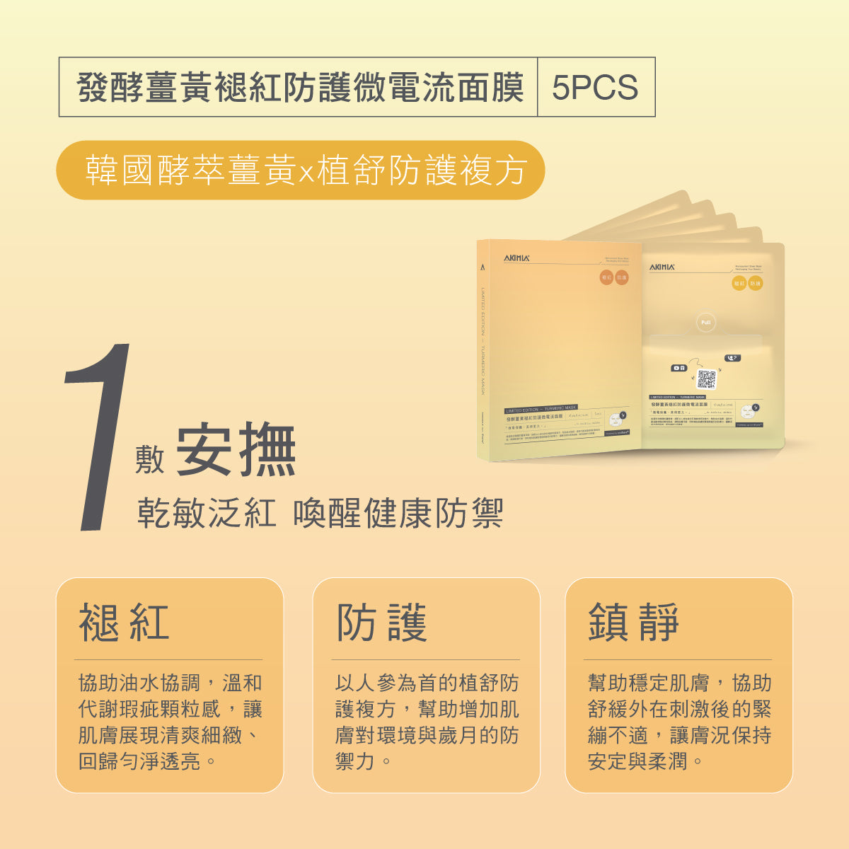 發酵薑黃褪紅防護微電流面膜|5pcs|盒裝