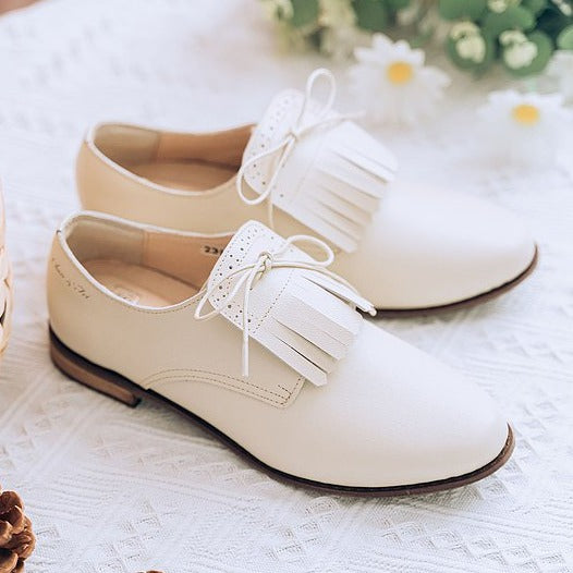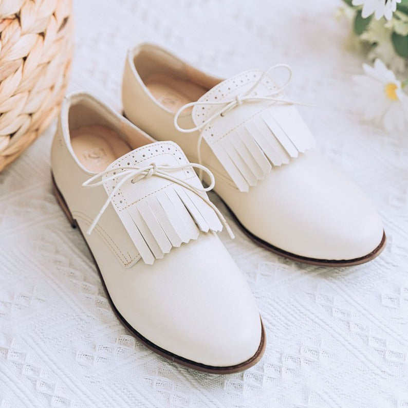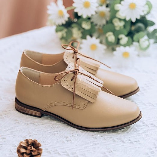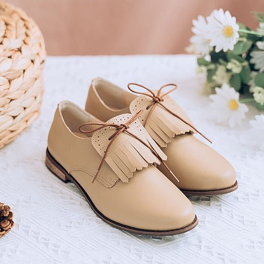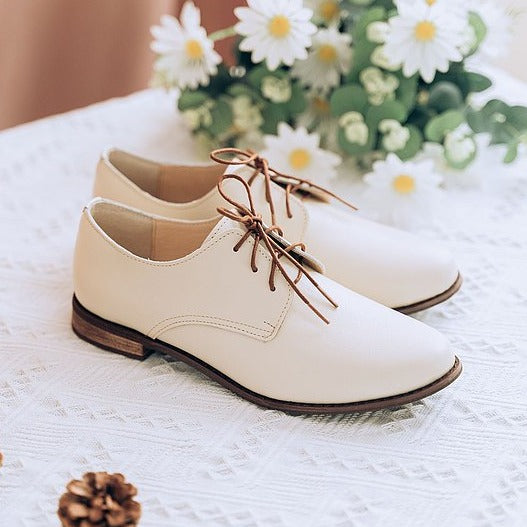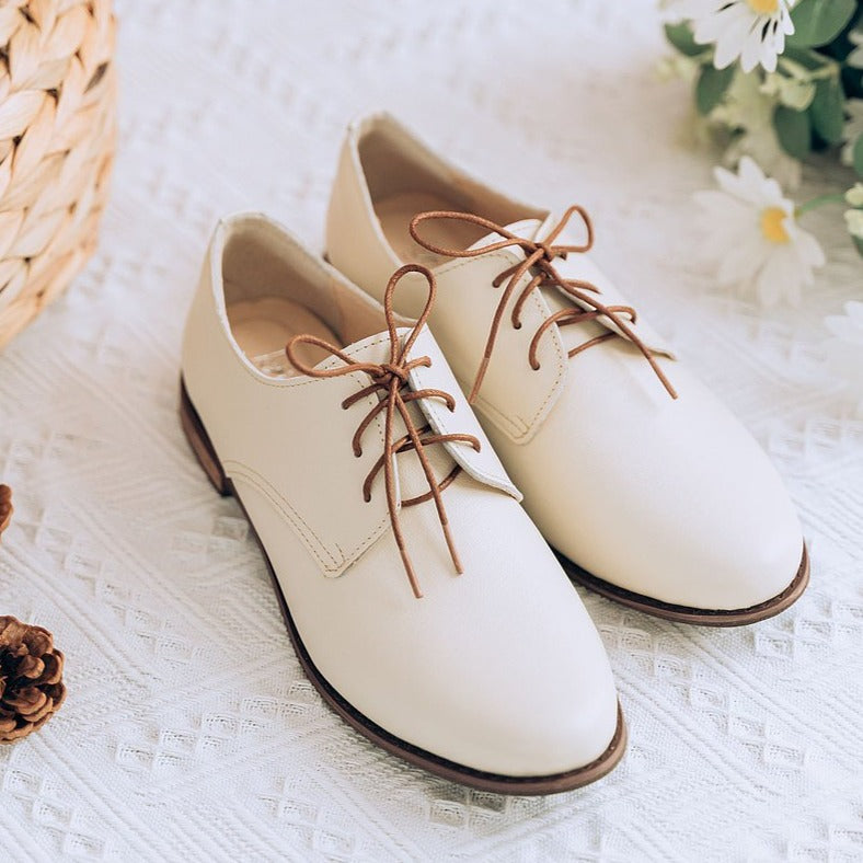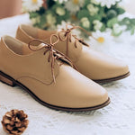 ◆ 鞋面 : 高級柔軟小羊皮,讓鞋穿起來柔軟又舒適。法式滾邊緞帶好優雅,精細滾邊、綁帶,經典牛津原素,經典原木鞋跟。