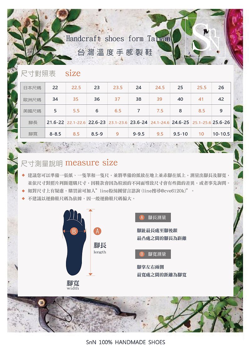 ※ 訂製後恕不退換,請謹慎挑選尺寸。附上尺寸對照表