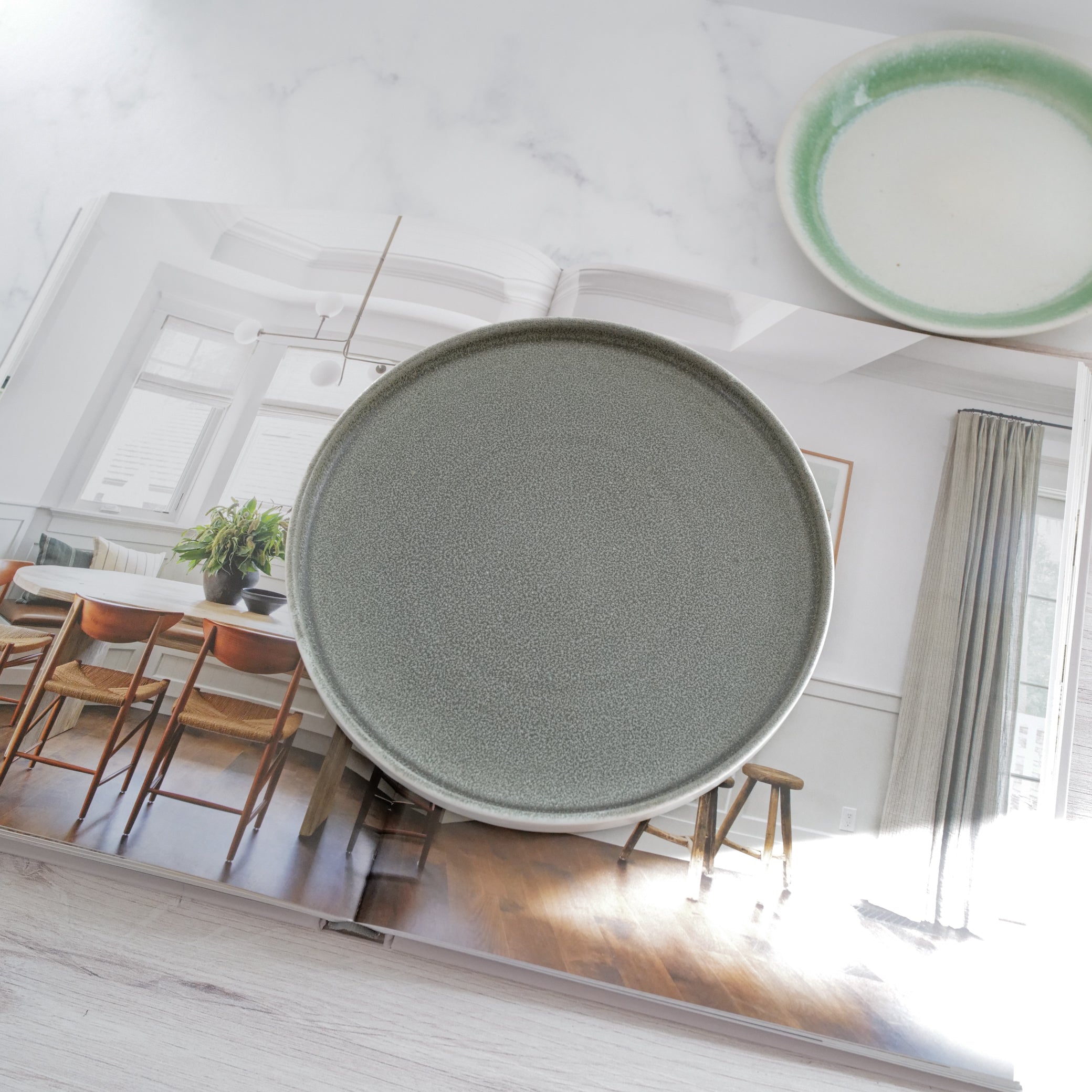 噴塗的柔和色彩讓用餐時刻從正餐到甜點,都能與各式料理互相協調,扁平的形狀在盛裝料理時更顯精緻優雅。