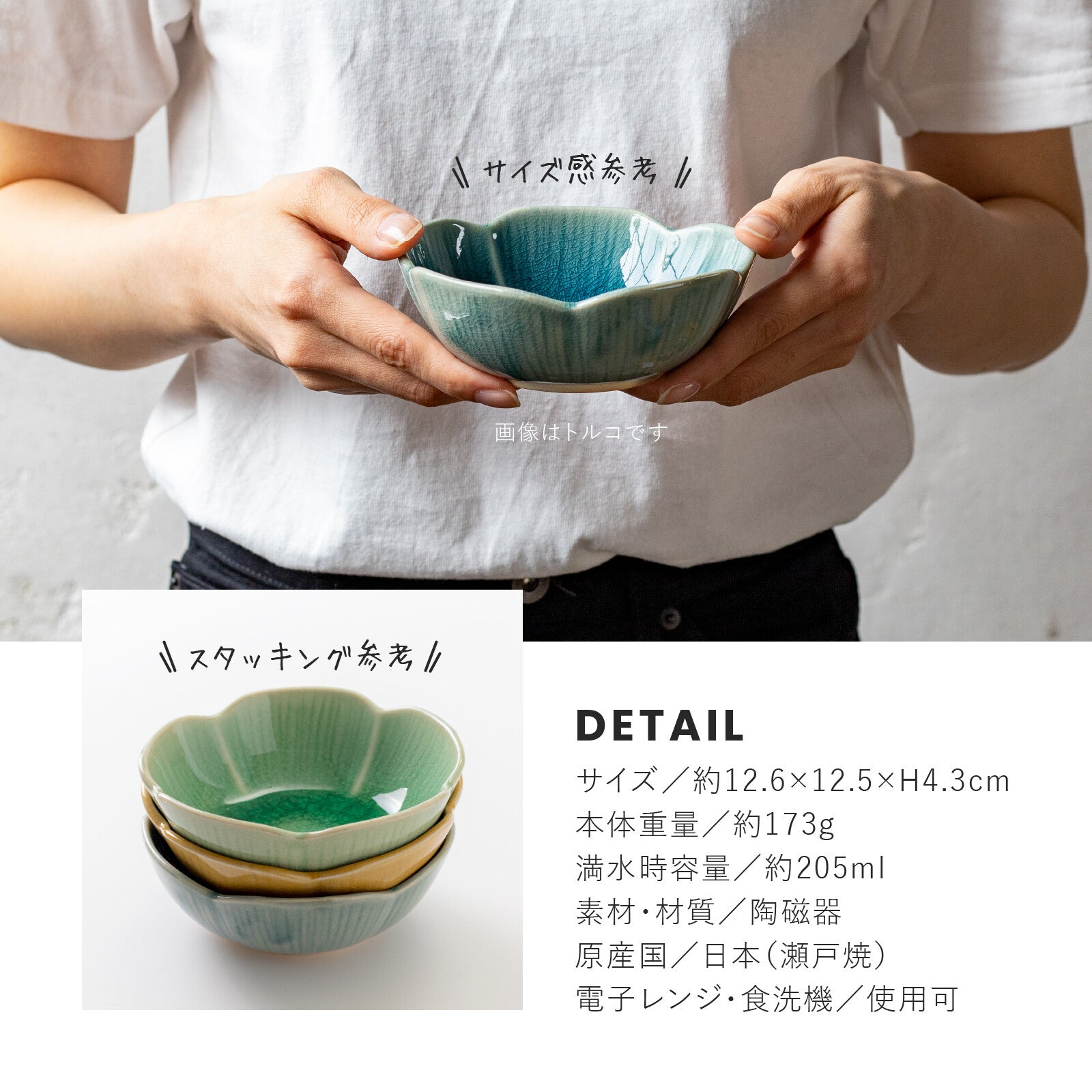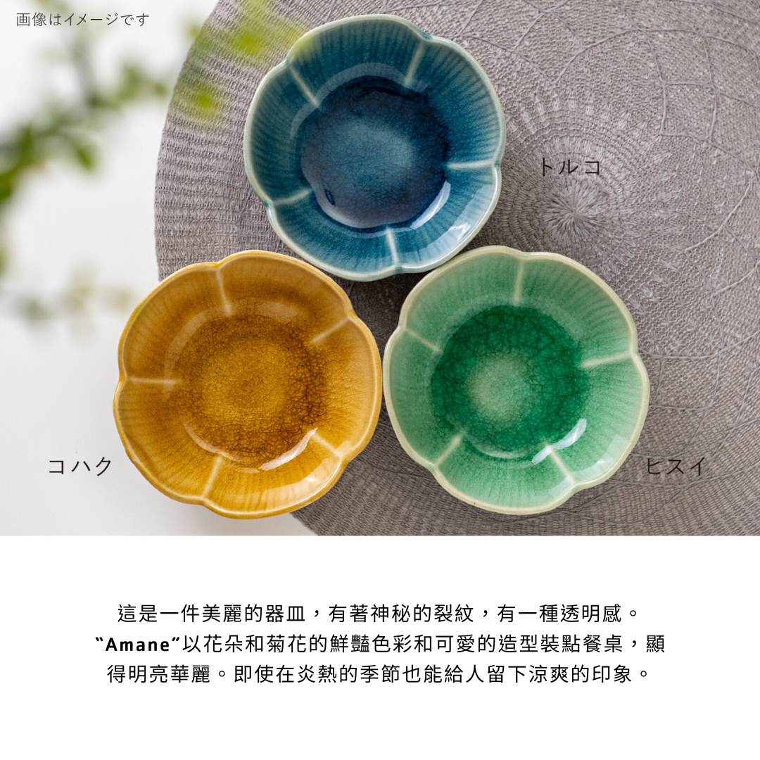 日本 amane 瀨戶燒花形碗 共三色