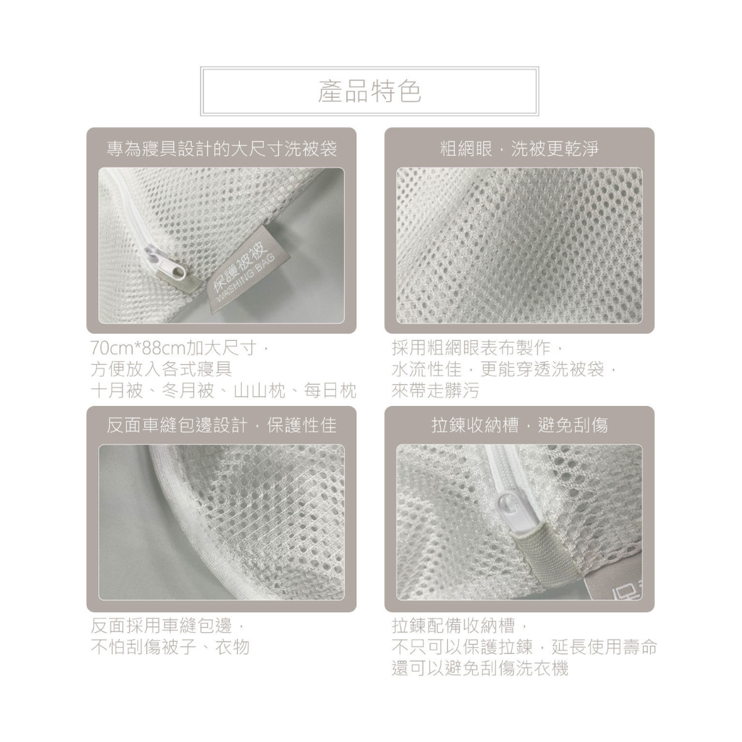 專為寢具設計的大尺寸洗被袋,粗網眼,讓被子被洗得更乾淨。