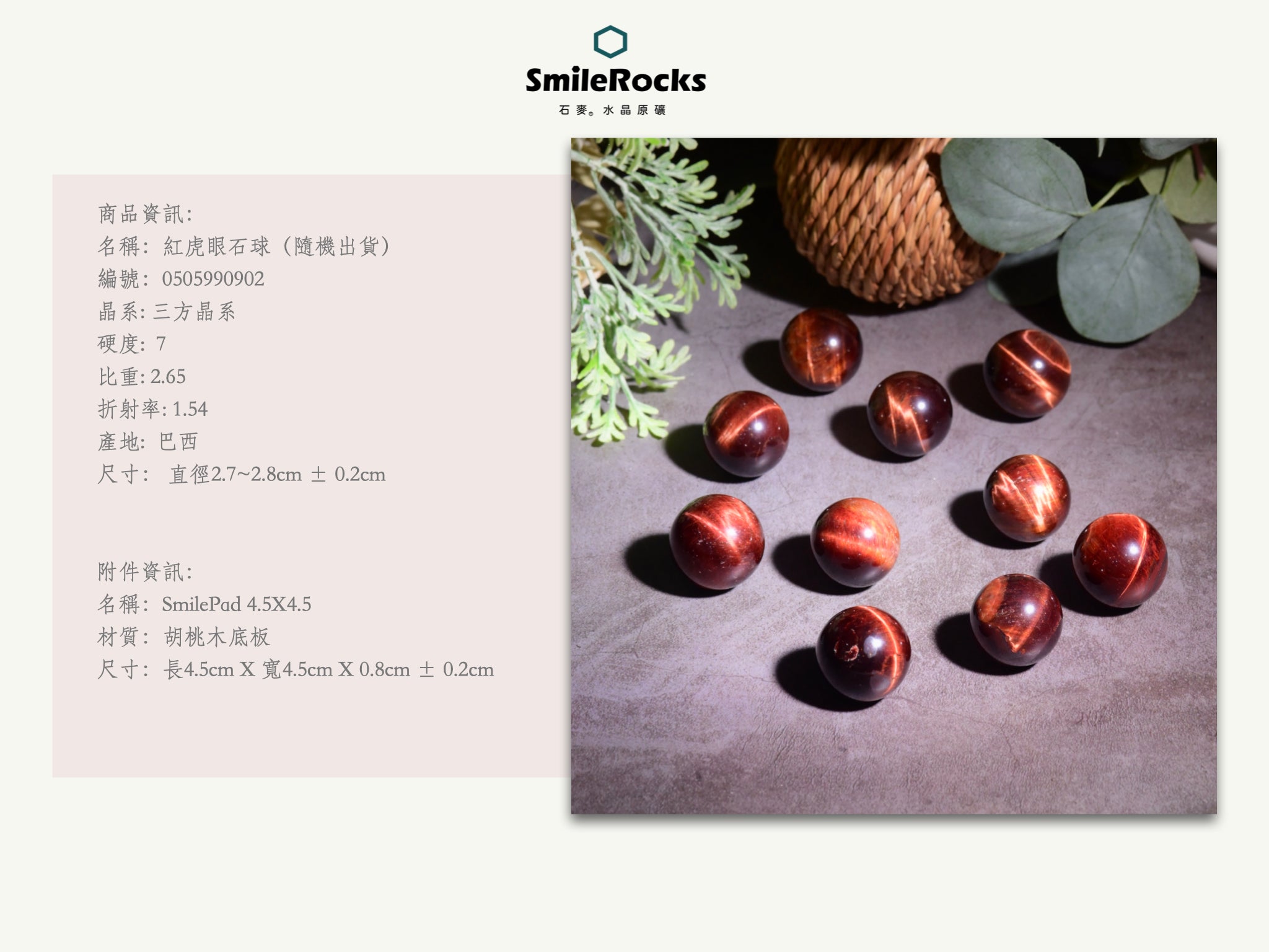 名稱:紅虎眼石球