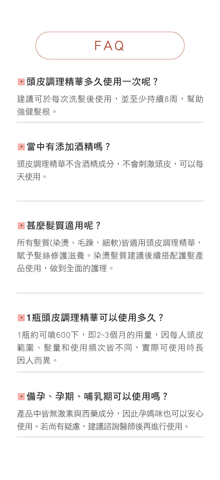 使用方法| 噴灑於頭皮區域,並以指腹輕柔按摩。