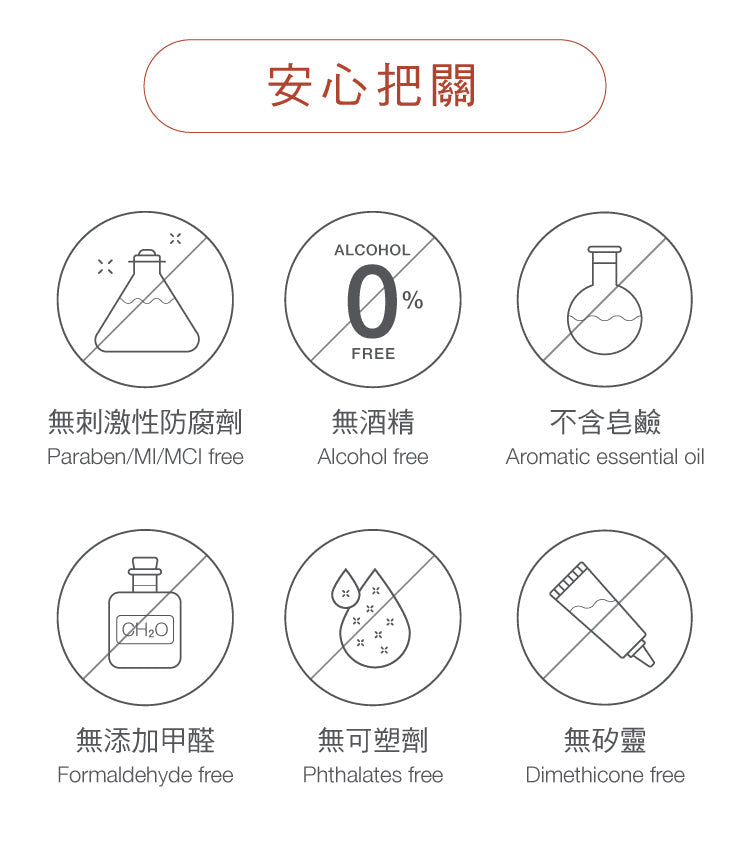 注意事項|避免產品誤入眼睛,若不慎接觸請立即以大量清水沖洗。使用中若出現紅、腫、刺激感等現象發生時請立即停止使用。請避免將產品用於傷口、紅腫及濕疹等皮膚異樣的部位。