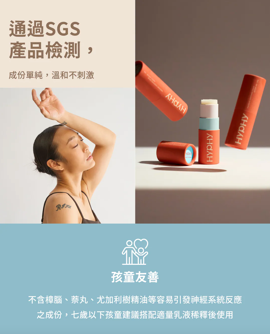 不含樟腦、萘丸、尤加利樹精油等容易引發神經系統反應之成份,七歲以下孩童建議搭配適量乳液稀釋後使用。