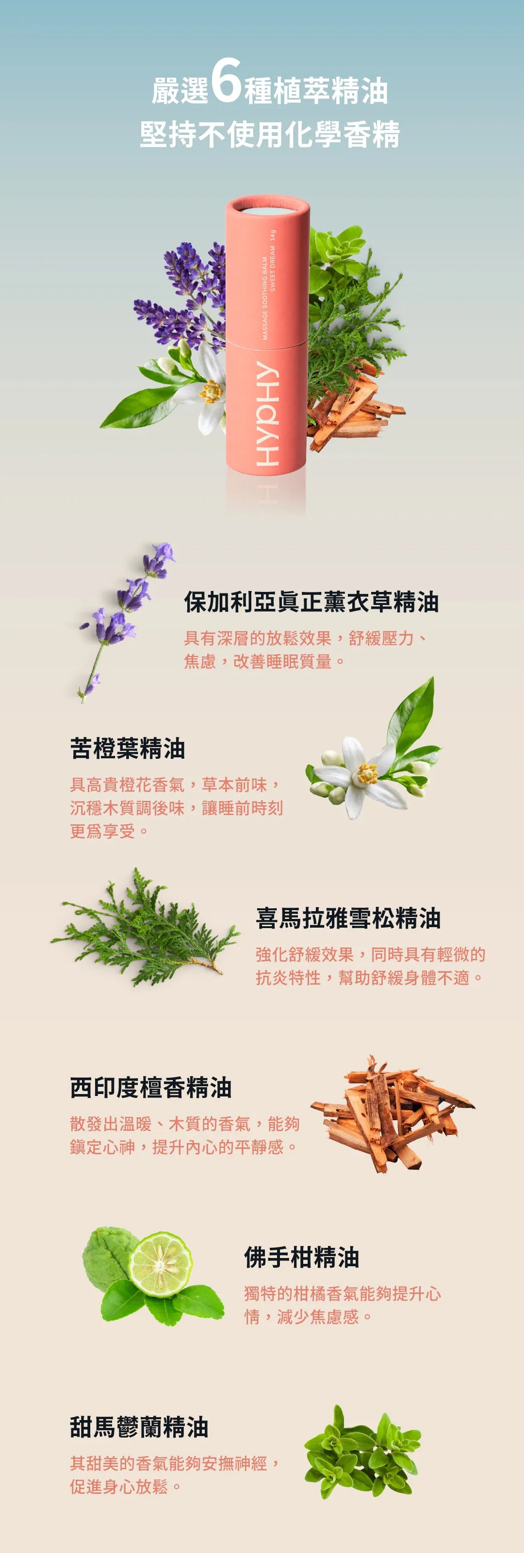 HYPHY嚴選6種植萃精油: