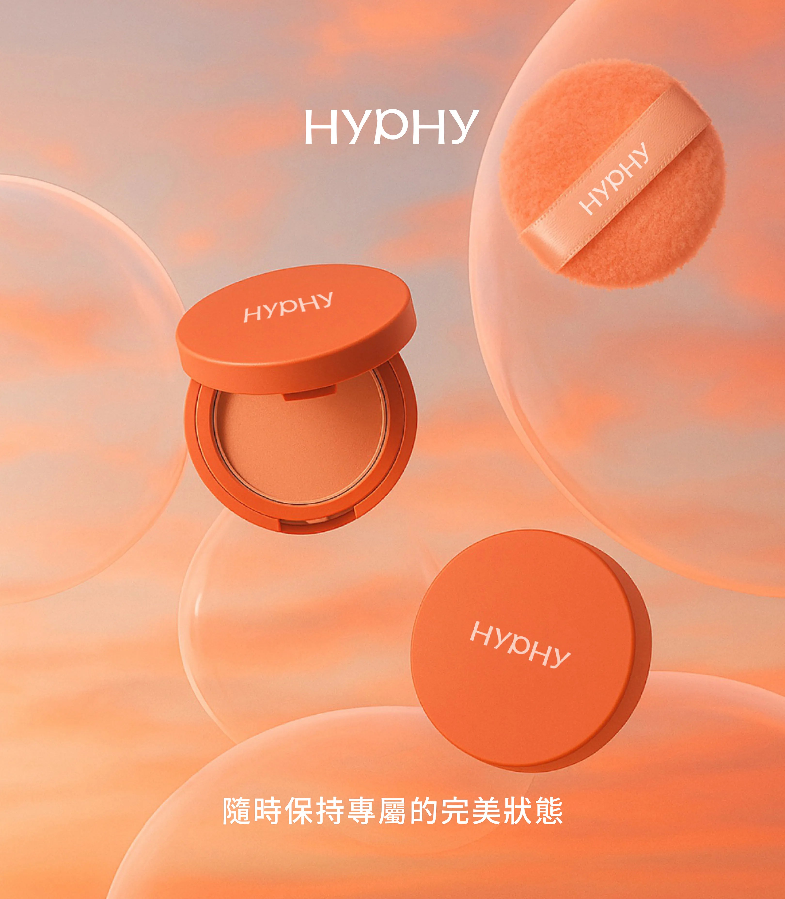 HYPHY 柔霧提亮蜜粉餅,掌心輕巧比例,隨時隨地柔光在線,隨手一握的高質感設計,從日常到晚宴,保持清透光澤。