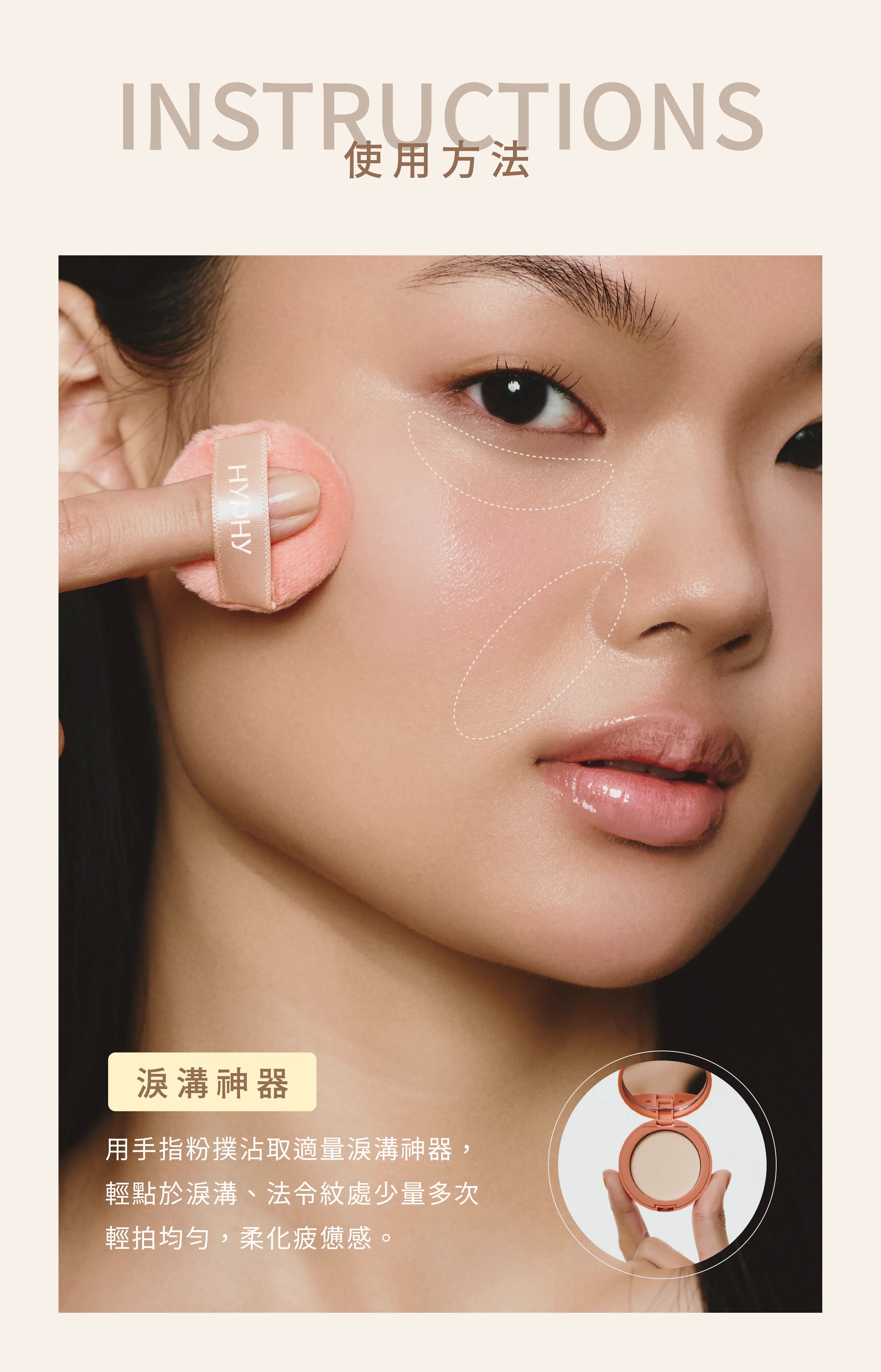 |用法:底妝之後局部提亮眼下、面中區,讓凹陷陰影隱形,整體膚質顯得平滑又澎彈明亮