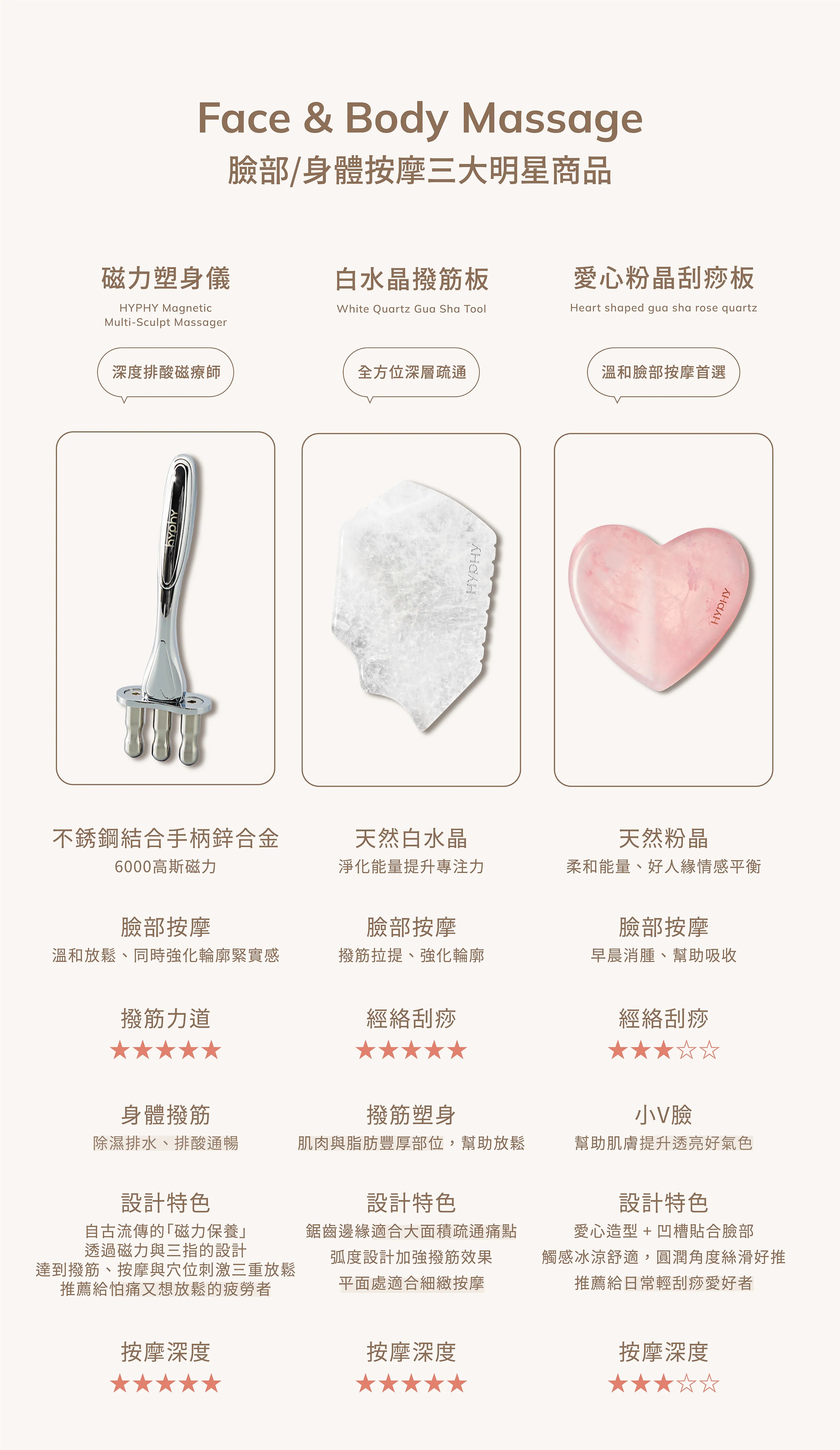 「HYPHY 磁力塑身儀」的微磁力刺激,能喚活青春,刺激增生。搭配保養品按摩,可促進吸收,打造水光肌。