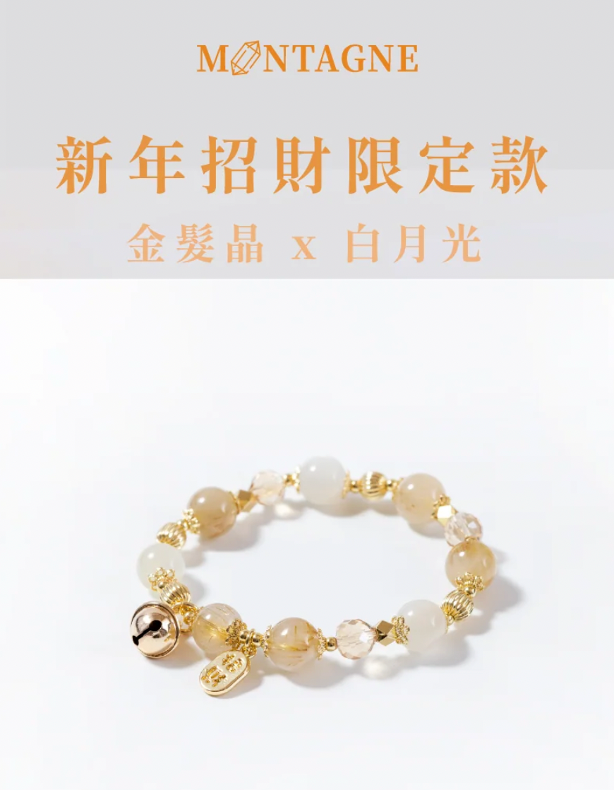 招財限定款手鍊,這款手鍊將金髮晶X月光石組合。