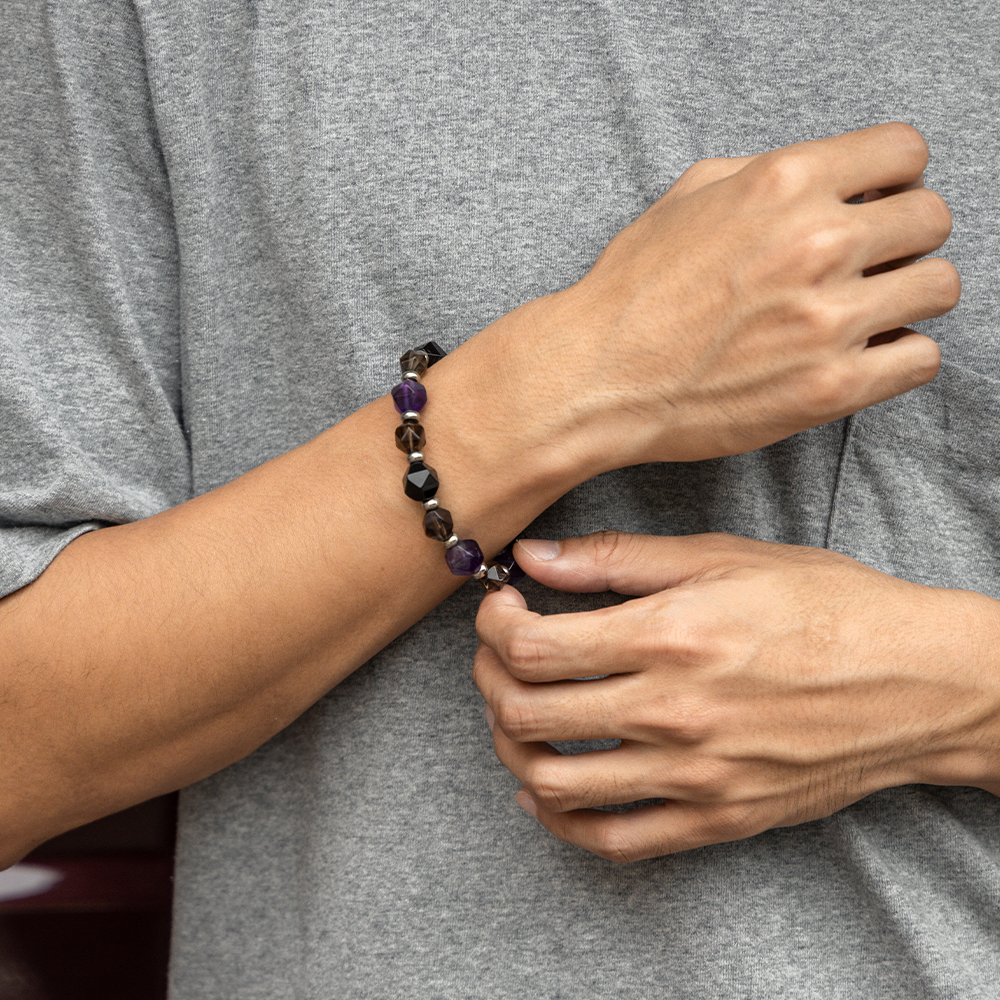Black Lily|紫水晶。黑曜石。茶水晶|彈力繩款