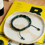 以優質的方形綠虎眼石、黑瑪瑙編織而成,每顆石頭都經過精細的切割和打磨,展現出其獨特的光澤和色彩,黑綠配的迷人,您將感受到寶石所帶來的平衡和穩定能量,同時展現出您的個性和品味。