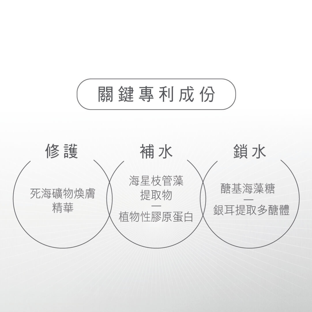 關鍵成分東加海星藻,富含氨基酸、海藻礦質、低聚糖等多重保濕成分,相較玻尿酸,更可長效維持肌膚保水、恢復彈性,撫平細紋!