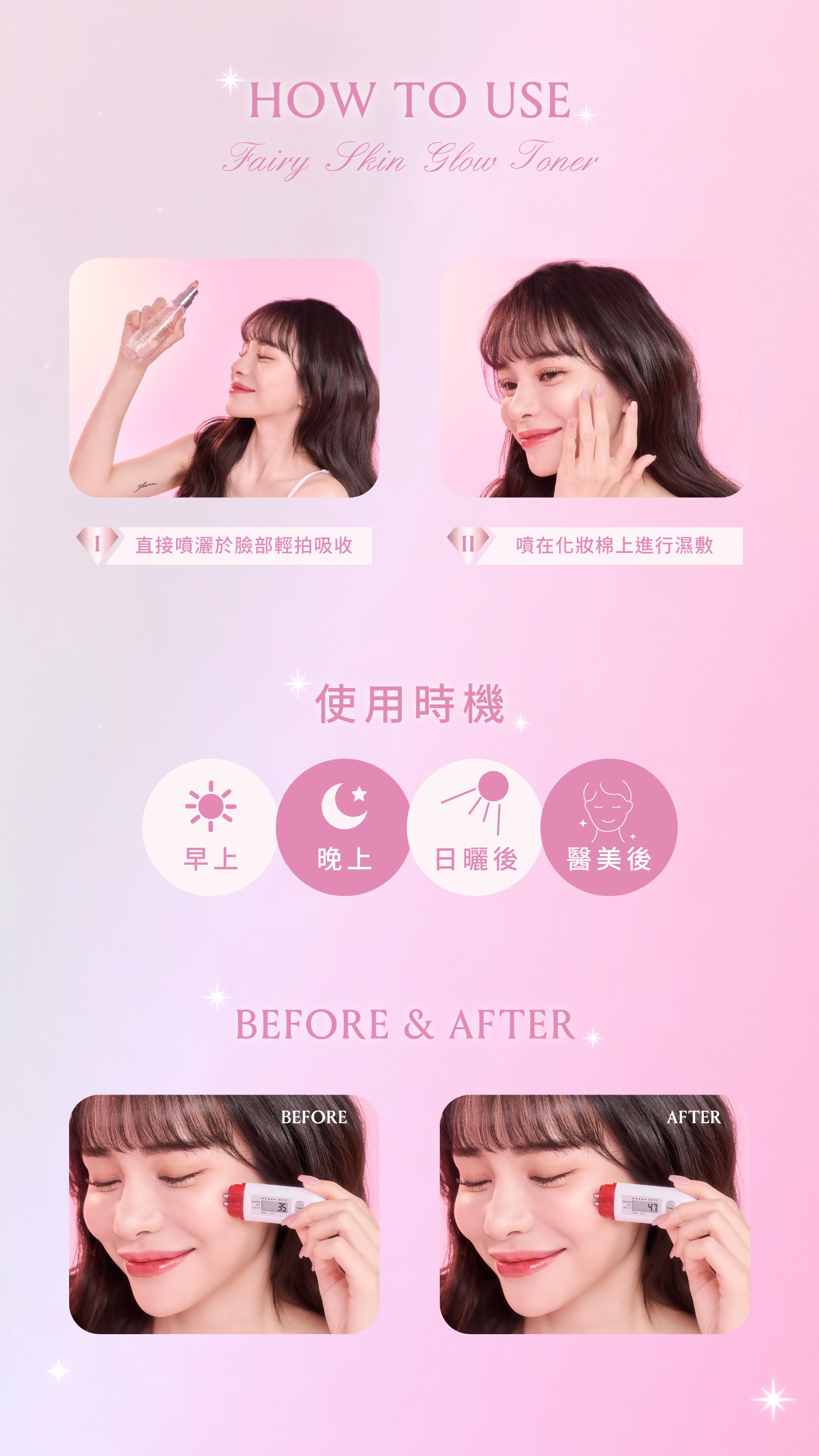 用法|每日早晚清潔後,噴灑適量化妝水在臉部,於肌膚輕拍吸收即可。