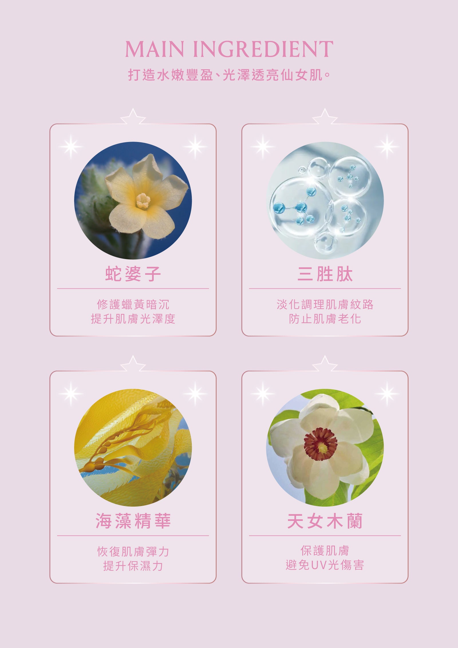 賦予肌膚健康的油水平衡系統!打造水嫩豐盈、光澤透亮仙女肌。