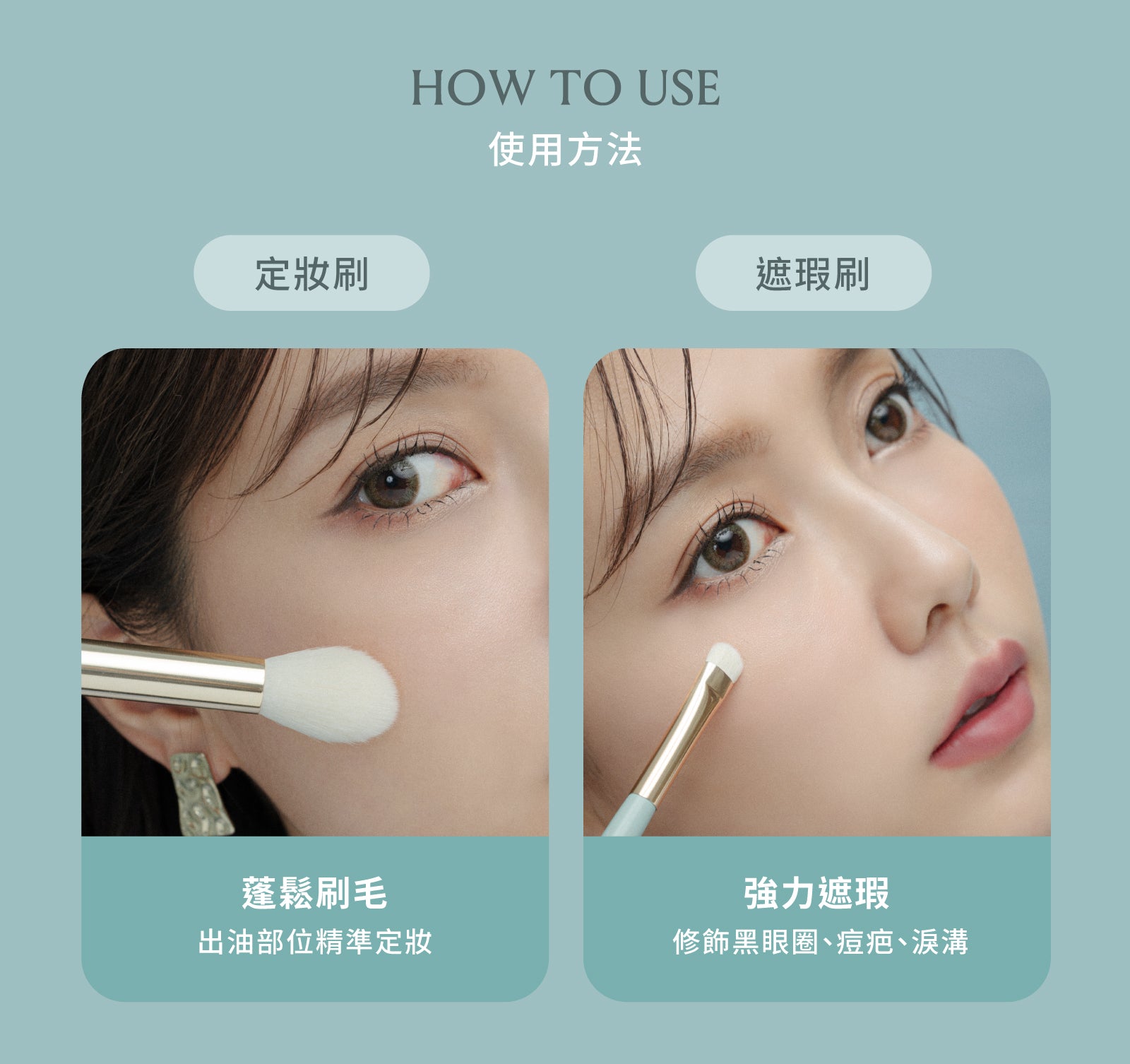用法|沾取適量彩妝品上妝,乾濕兩用。