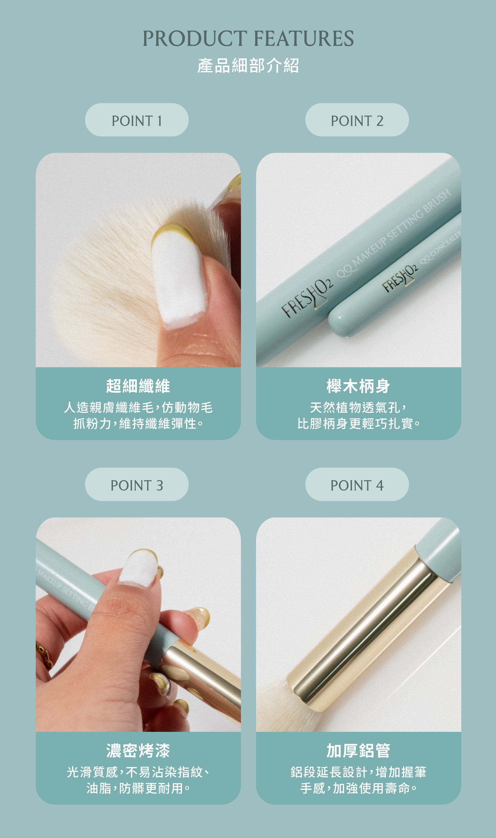 針對彩妝重點部位量身打造,特製纖維毛柔軟不刺膚,刷毛蓬鬆易沾取好清潔,輕鬆上妝無負擔,打造完美精緻妝感。