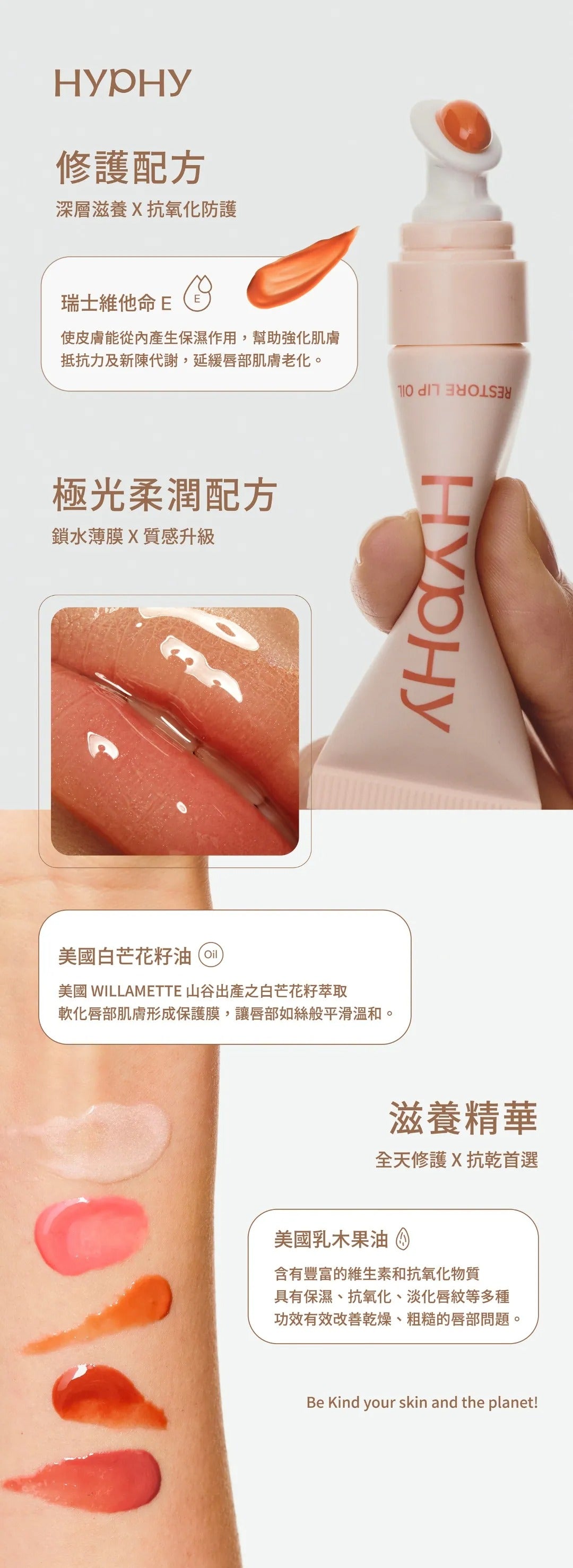 HYPHY 全新升級【3分鐘潤色修護唇油】四效合一隨行唇膜
