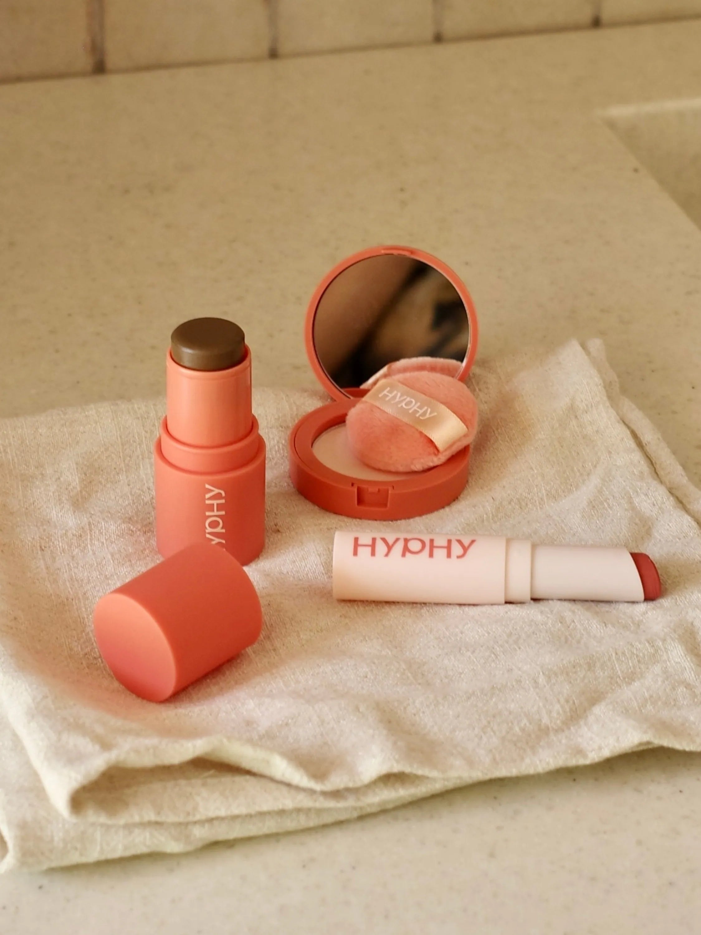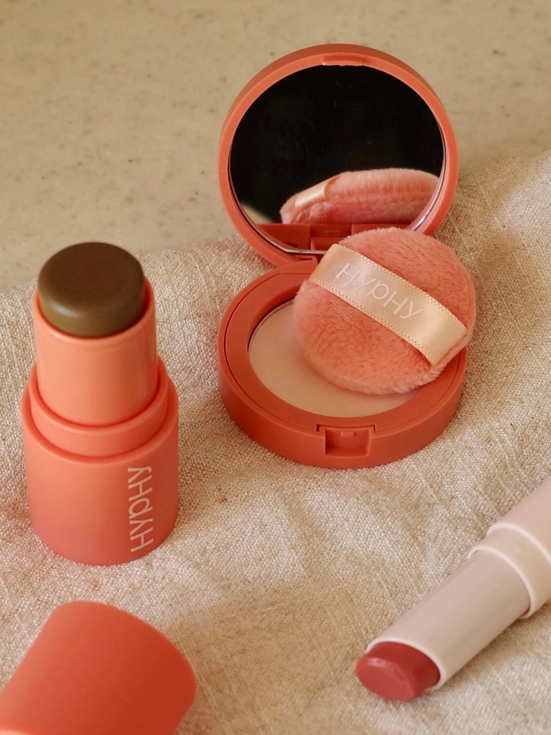 HYPHY 全能迷你蜜粉餅,柔霧質地一拍即融,迅速修飾、隱匿毛孔與油光,同步潤澤與防護。