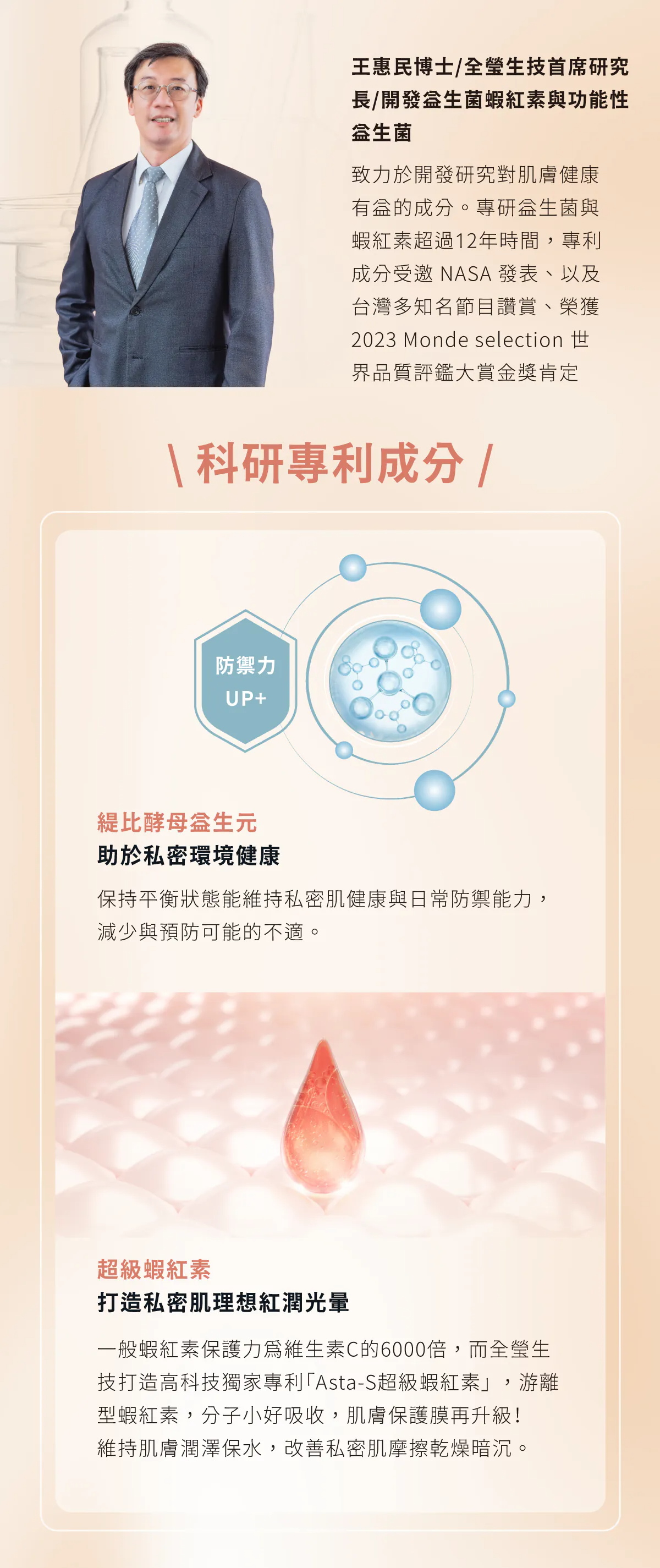 ・獨家專利「超級蝦紅素」打造私密肌理想紅潤光暈