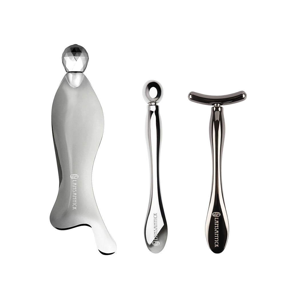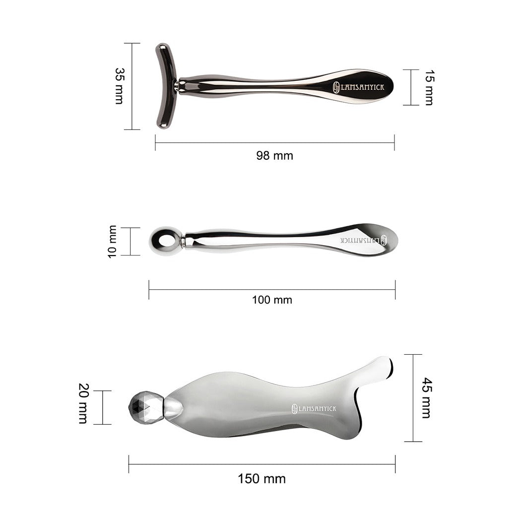 ●T型臉部推推棒(鋅合金):T型面設計有效貼合肌膚,達到精準按摩x拉提的效果。