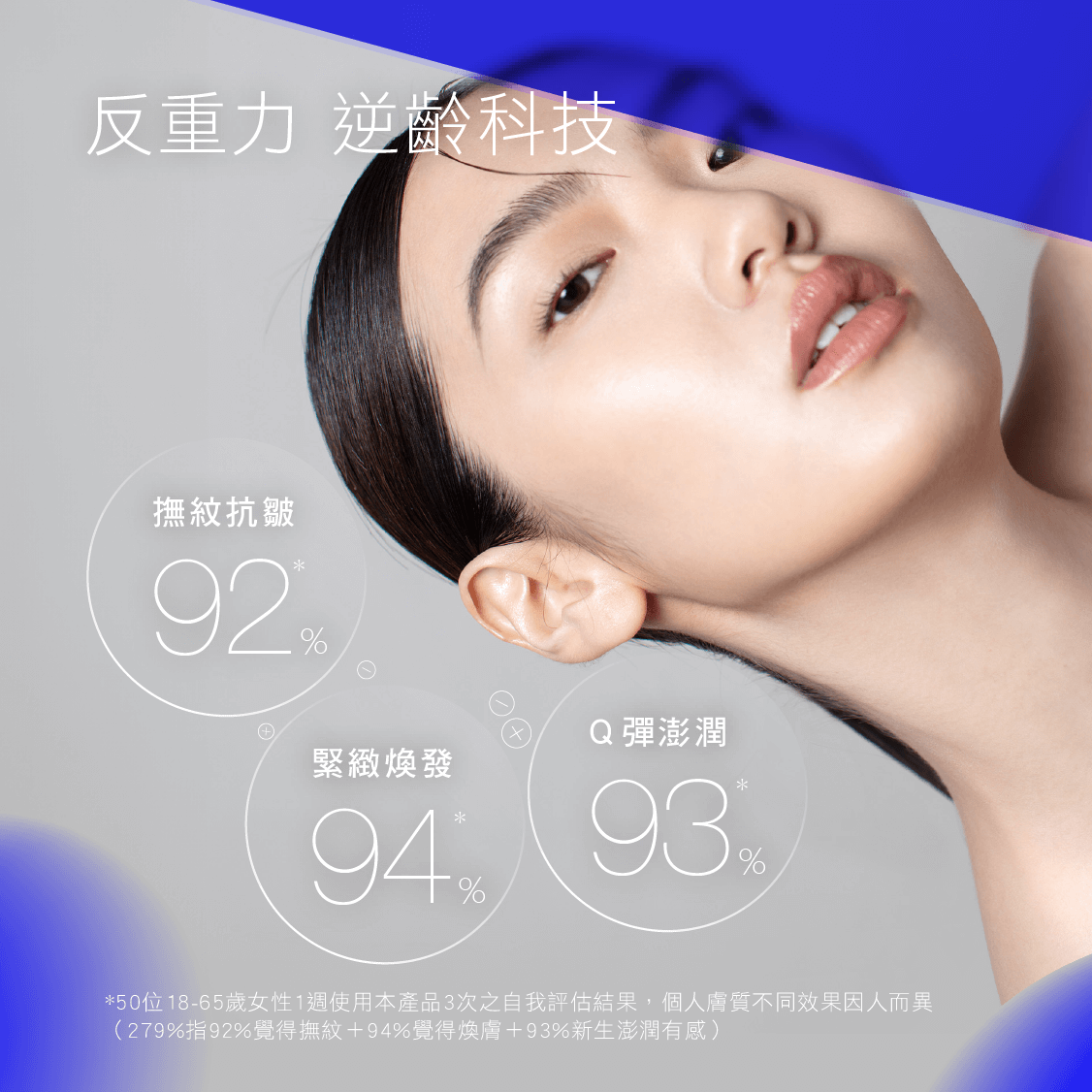 採用反重力六胜肽Argireline®,鎖定表情動態紋,快速有感放鬆撫平,搭配澎潤成分一茵蔯蒿萃取,結合頂級返齡機密一藍銅胜肽,鎖定老化源頭,填充緊實彈力新生機,反重力賦活平滑無痕膚表,幫助重現澎彈緊緻平滑煥發!