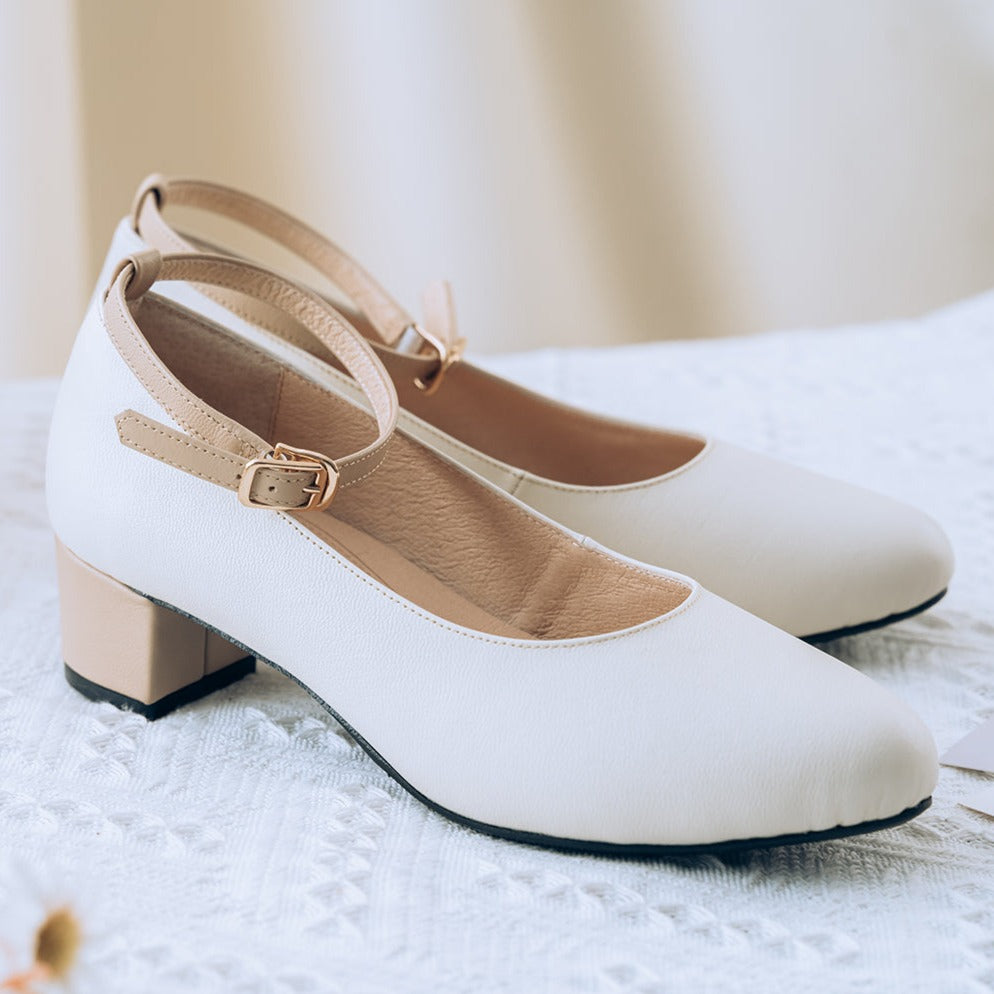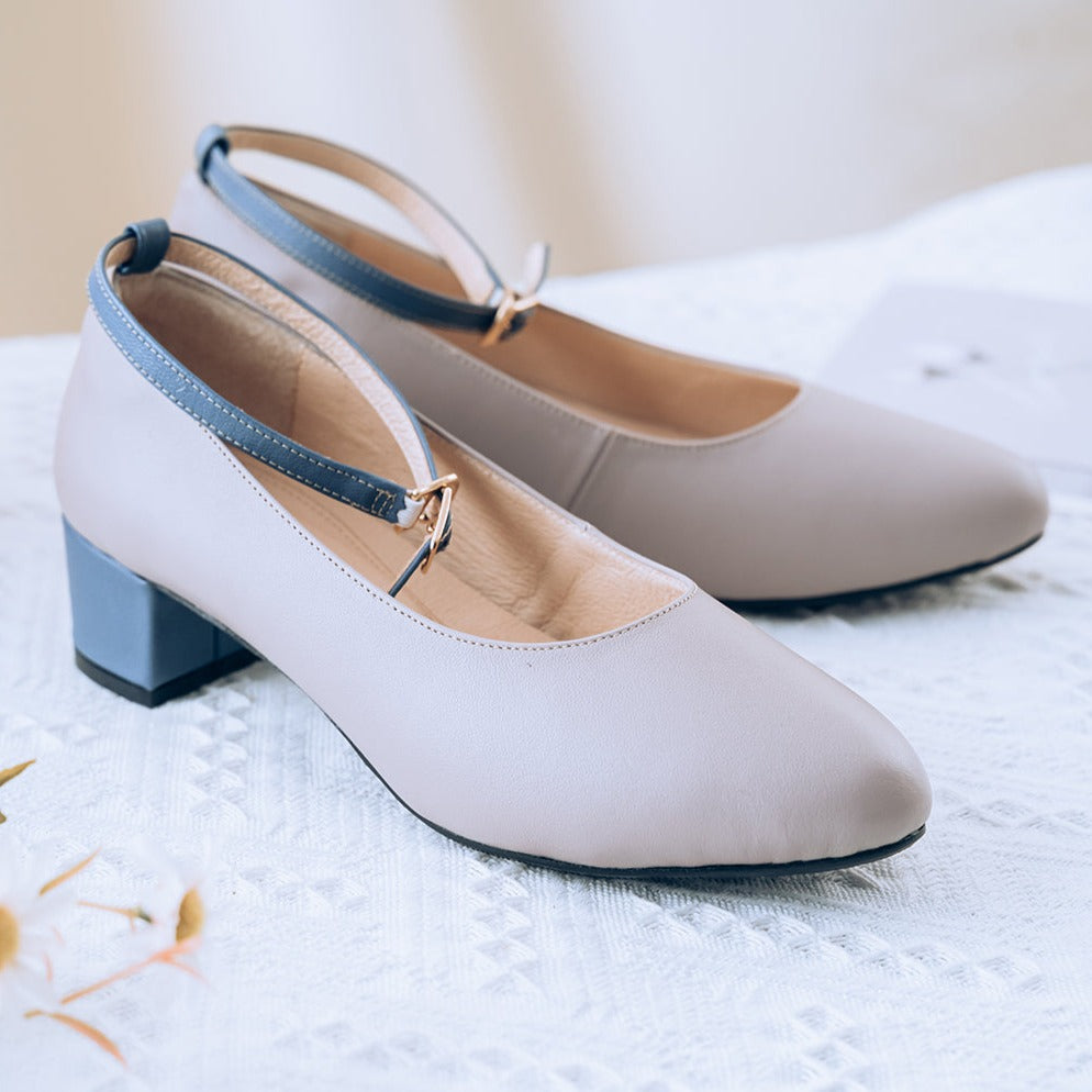 ◆ 鞋面 : 日本進口柔軟羊皮,讓鞋穿起來柔軟又舒適。雙色清新拼接,經典優雅配色,細緻雙色跟。