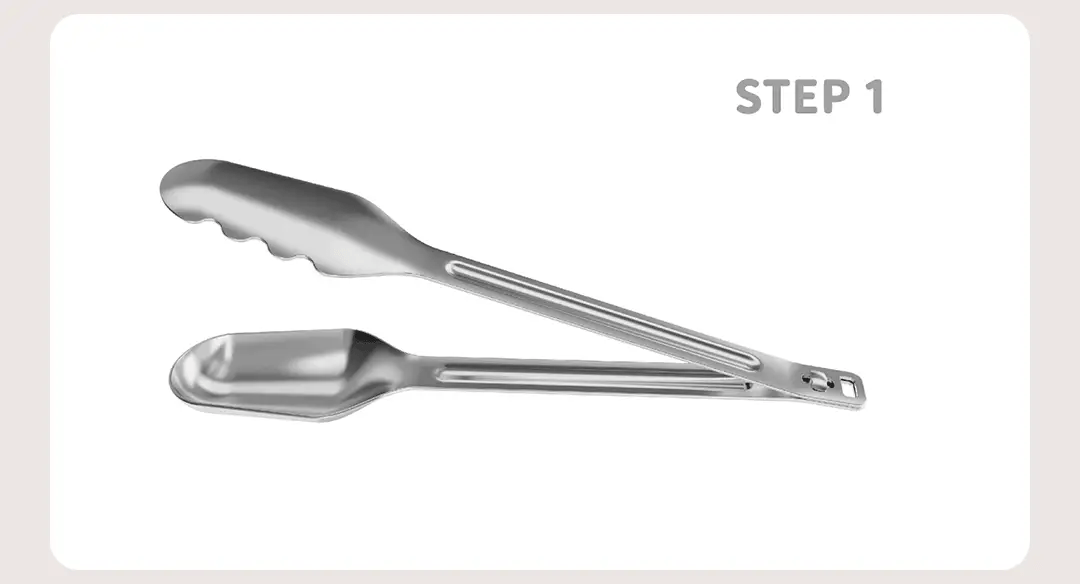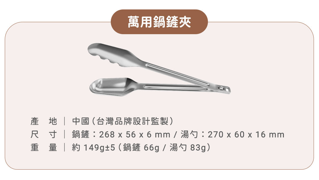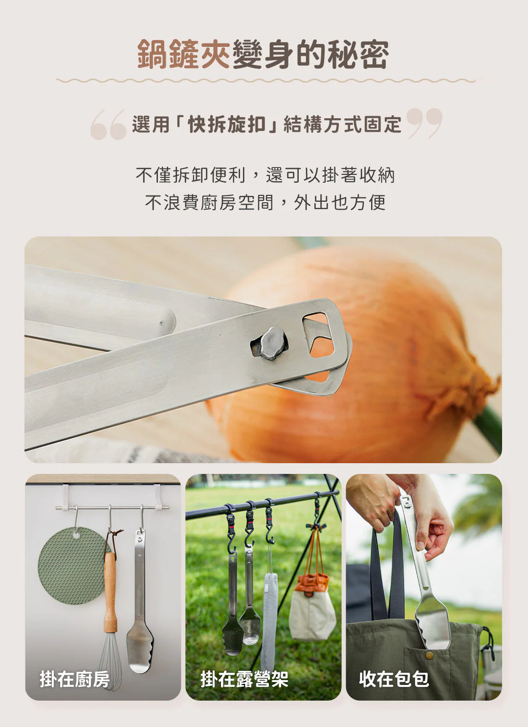 快拆旋鈕設計,讓鍋鏟夾迅速切換成兩種型態