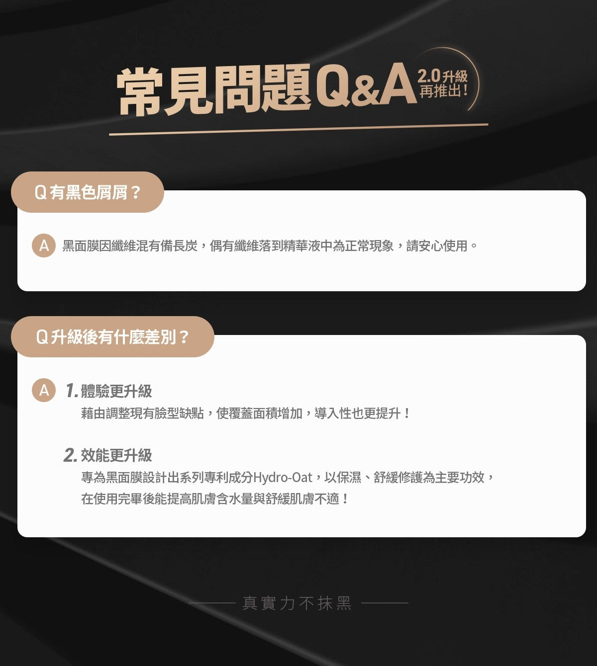 黑面膜因纖維混有備長炭,偶有纖維落到精華液中為正常現象,請安心使用。