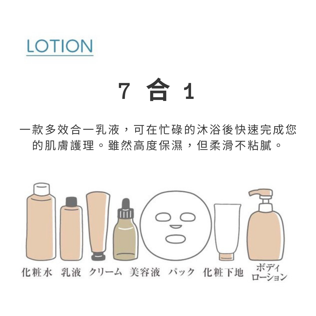 ●具備7種功能(乳液、精華液、乳液、潤膚露、面膜、乳霜、底妝)的整合式乳液。