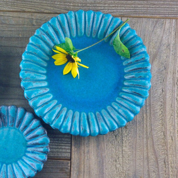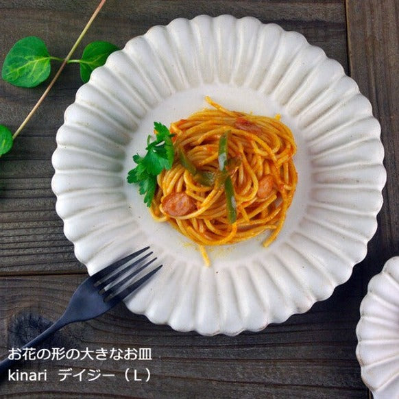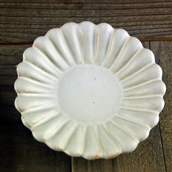 以益子燒溫潤質樸的手法來表現雛菊花瓣造型,非常可愛美麗,此款盤的深度適中,可輕鬆用作甜點盤或餐盤。