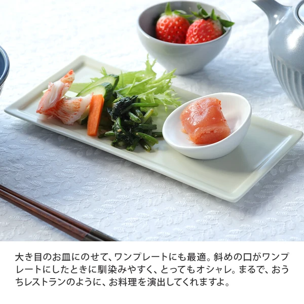 傾斜的形狀便於放置湯匙或叉子,即使在上面放沾醬或調味時看起來也很時尚。