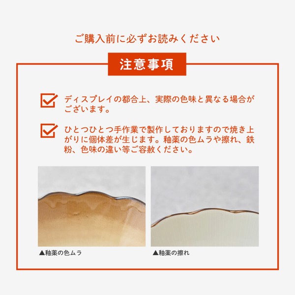 * 由於產品特性,可能會有著色不均、釉料滴落等差異,但產品使用時不會有問題。由於每件商品均由工匠手工完成,因此請將其作為具有獨特個性的獨特產品。