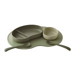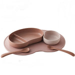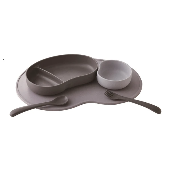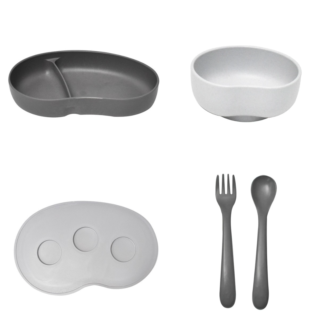 餐墊:設計有三個固定餐碗的圓形槽,可以隨著使用習慣和孩子的成長改變組合。