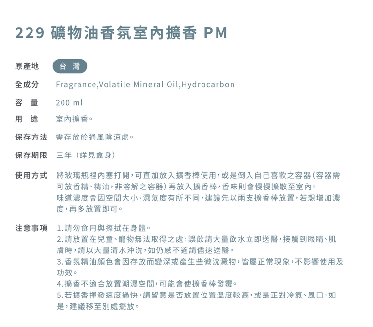 Ran 229 礦物油室內香氛擴香 PM(安息香炭木)