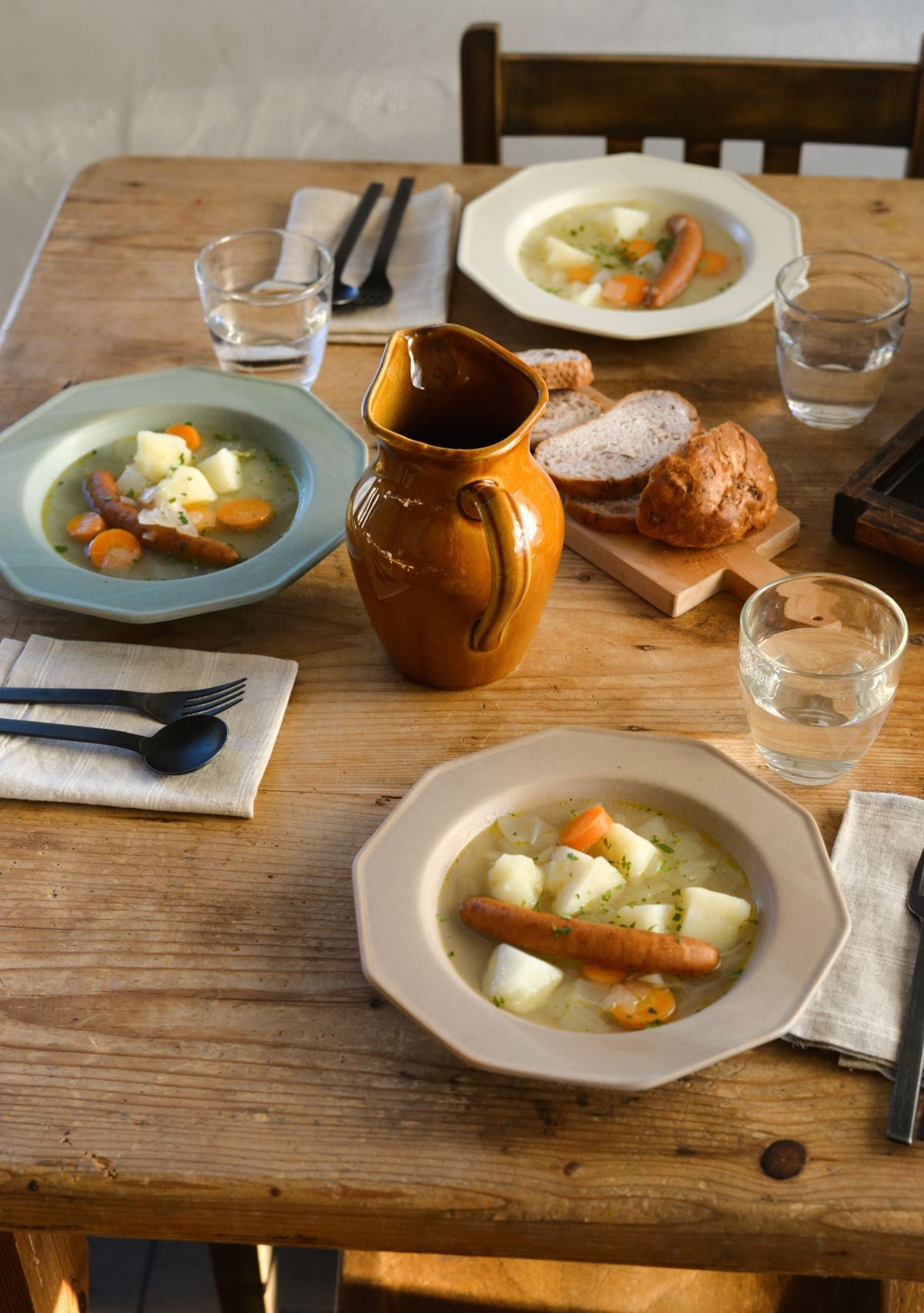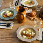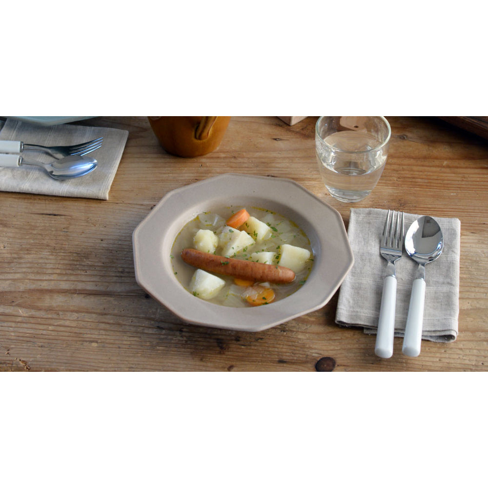 以啞光和柔和的色彩為特色,Foret 在法語中是森林的意思,陶瓷材料經久耐用且易於處理。邊緣形狀的靈感來自於法國古董器皿,您會感到老式、懷舊和簡單。最棒的一點在於,十角形的邊緣設計是圓潤曲線而不是尖角,不論從哪個角度拿取,手感都很好,拿在手裡也安心。9.5 英寸的盤子可用於盛裝意大利面和咖哩,深度適中,也推薦盛裝湯品。
