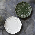 S 4寸盤推薦用來放置較小的糕點或可麗露等的西式甜點。M 5.5寸盤是適合放日本大福麻糬等甜點或是少量下酒菜的尺寸。質感滑順的凜然白色與有著濃淡表現的深綠色,兩種顏色皆既沉穩又能營造出特別氛圍的餐桌。