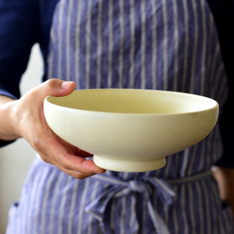 寬而淺的碗型可以很容易地盛裝各種各樣的麵條配料,而且造型也很漂亮。底部寬,所以勺子用起來會很順滑,適合攪拌和混合食材。此外,平台的形式給日常簡單的菜餚帶來特別的感覺。